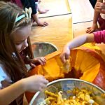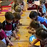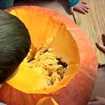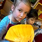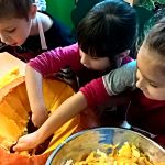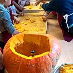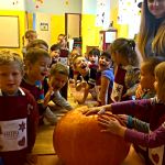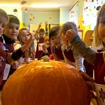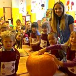 25 października tematem zajęć była „Domowa spiżarnia”, a ponieważ w październiku wypada Dzień Dyni, dlatego też postanowiliśmy uczcić jej święto i zrobiliśmy coś właśnie z niej! I tym oto sposobem powstała „Marynowana dynia na słodko”. Oczywiście tak dorodna dynia (za którą bardzo serdecznie dziękujemy naszej Pani Reni), dekoruje teraz naszą szatnie – bo przecież zbliża się HALLOWEEN!! ????????