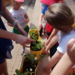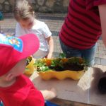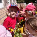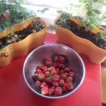BIEDRONECZKI postanowiły założyć zielony „ogródek” w sali. Posadziły cebulkę, posiały szczypiorek, rzodkiewkę, pietruszkę, ale o tym już było…. my się wcale nie nudzimy i ostatnio zasadziliśmy TRUSKAWKI 🙂