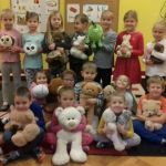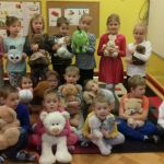 Dzieci wzięły udział w różnych zabawach i tańcach z misiami oraz opowiedziały historie swoich maskotek i pluszaków. Dzieci, przy pomocy pani, wymieniały ulubione bajki bajki, których bohaterami jest miś np. „Kubuś Puchatek”, „Miś Padington” czy „Miś Uszatek”. Wszyscy zgodnie stwierdzili, że misie to najfajniejsze maskotki do przytulania i do spania. Na koniec dzieci wykonały pracę plastyczną malując farbami sylwety misiów i zrobiły sobie pamiątkowe zdjęcie.
