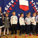 W dniu 5 listopada w naszym przedszkolu odbyła się uroczystość z okazji 101 rocznicy Odzyskania Niepodległości przez Polskę. Rodzice, którzy bardzo licznie przybyli na imprezę podziwiali program artystyczny w wykonaniu małych artystów. Nastrój uroczystości został podkreślony przez wspólny śpiew piosenek patriotycznych „Przybyli ułani pod okienko” oraz „Pierwsza kadrowa „.