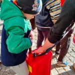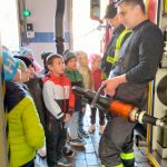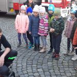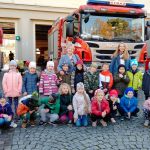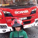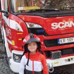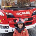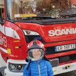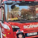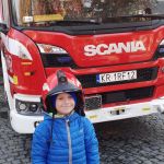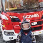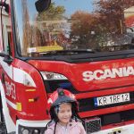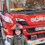 28.10 do siedziby Straży Pożarnej na os. Zgody. Co się tam działo!!! Dzieci, a zwłaszcza chłopcy, były przeszczęśliwe. Franio- wielki miłośnik wszystkiego co jest związane ze strażą pożarną, był zachwycony mogąc siąść za kierownicą wozu strażackiego, polewać wężem strażackim, przymierzyć hełm…Z góry zapowiedział, że w przyszłości na 100 % zostanie strażakiem. Jednym słowem zawody wybrane: połowa policjantów, połowa strażaków…