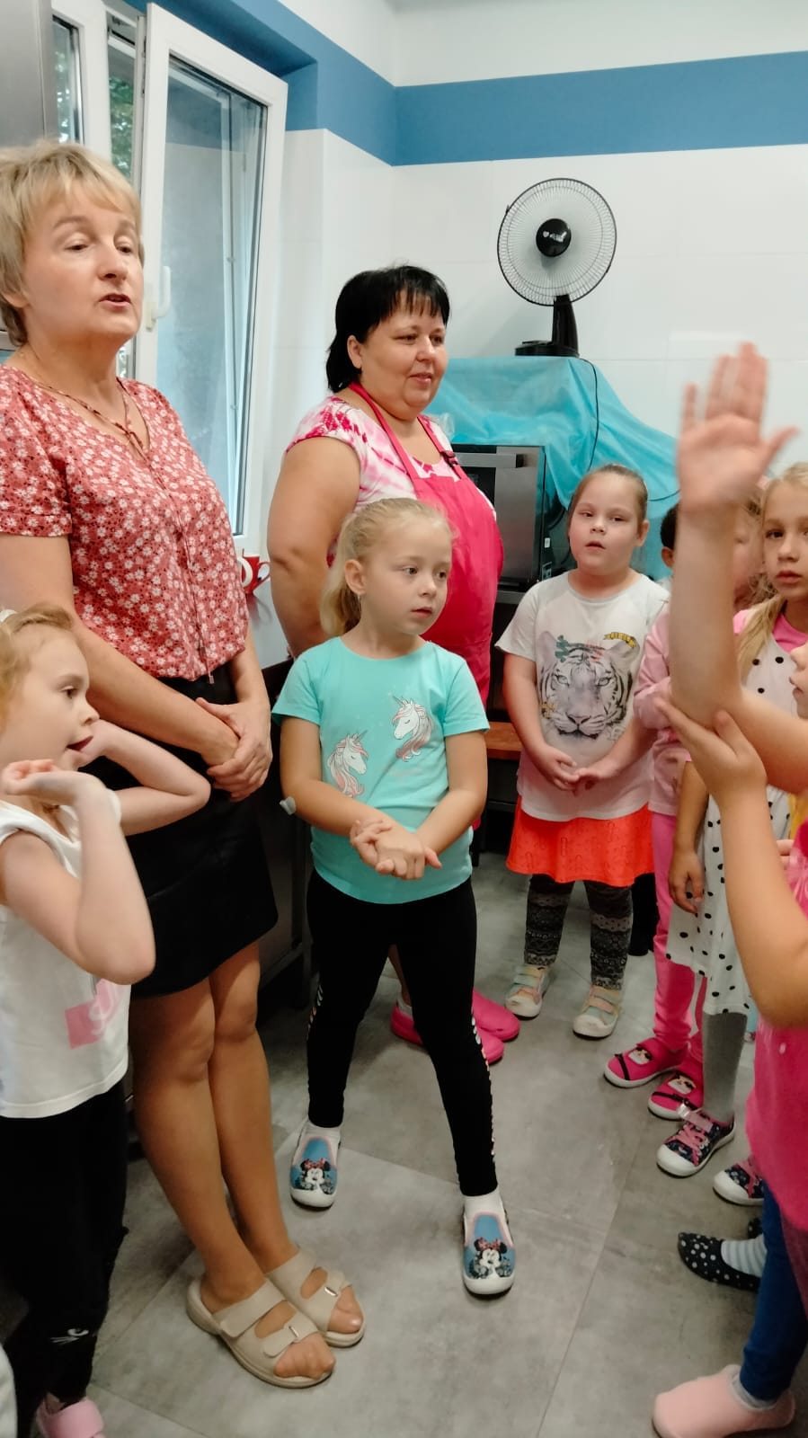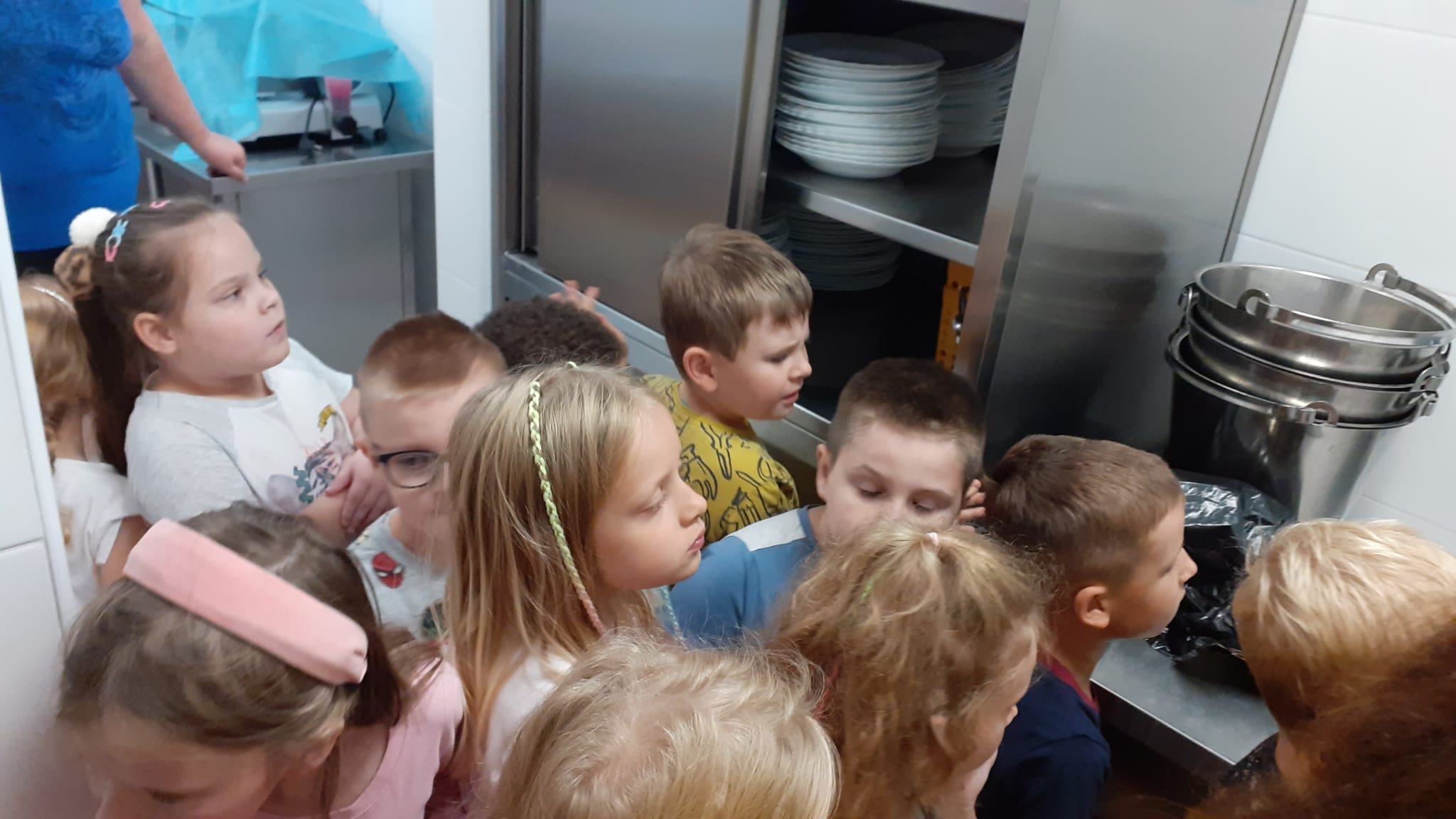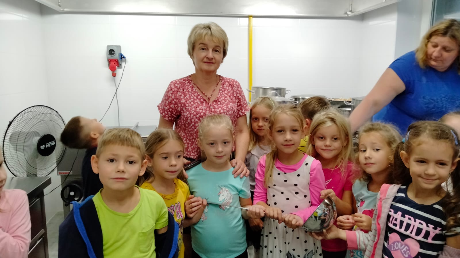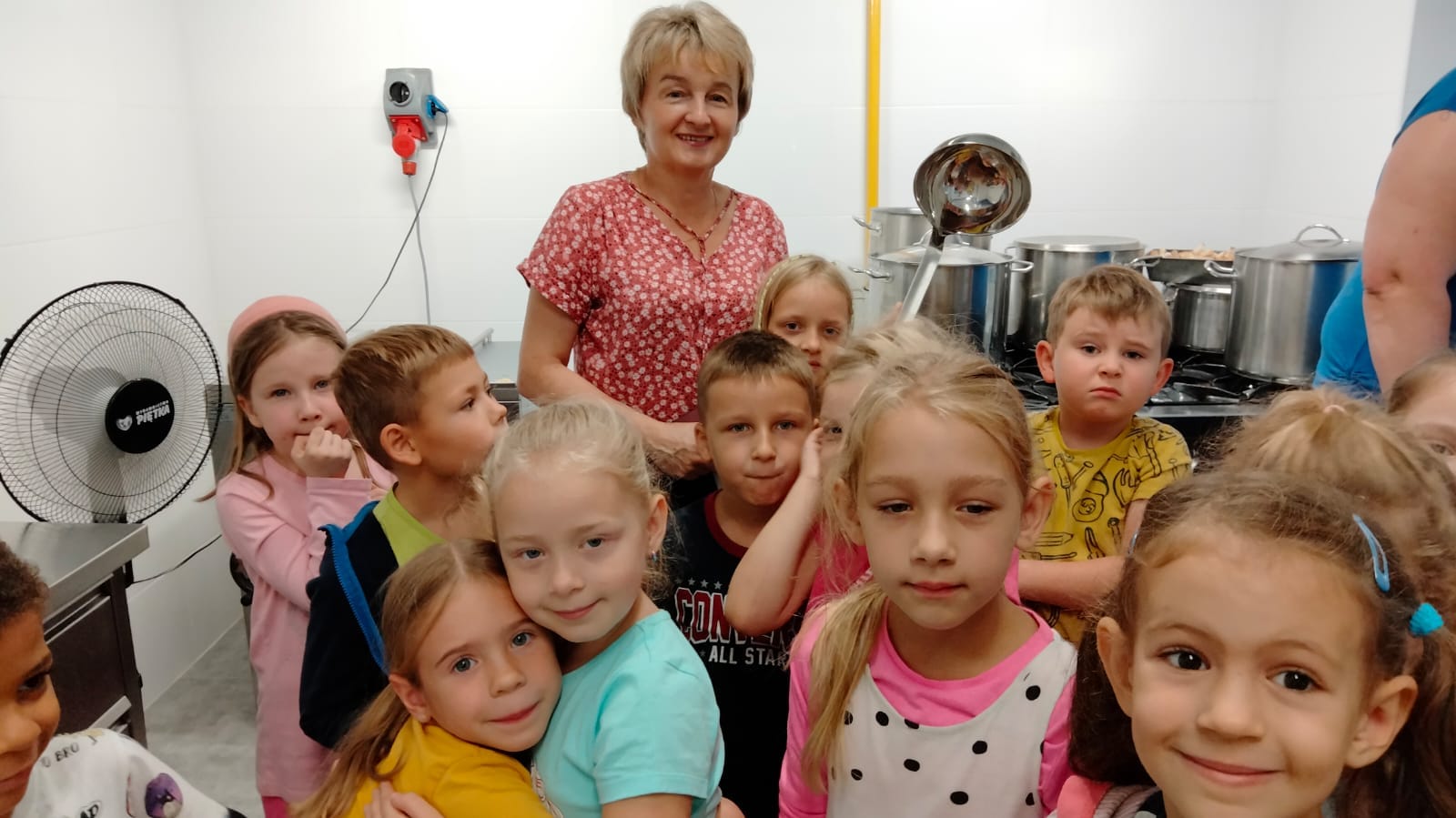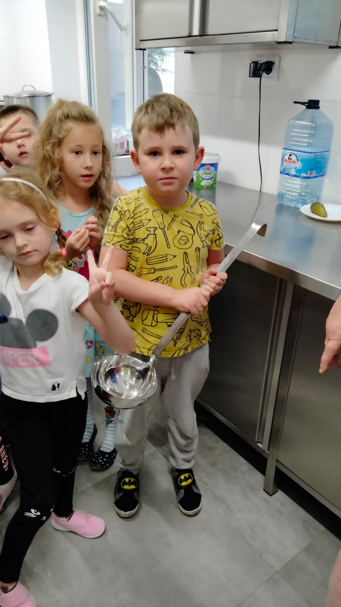 , czyli dzieci z grupy IV, w ramach preorientacji zawodowej zwiedziły kuchnię przedszkolną i miały możliwość porozmawiania z paniami kucharkami: Panią Renią i Panią Iwonką na temat ich pracy. Dzieci poznały sprzęty i naczynia kuchenne, które wydały im się ogromne. Spróbowały również podać paniom kucharkom przepis na zupę. Niektóre doskonale wiedziały jakie warzywa należy do niej wrzucić. Jednym słowem wizyta była „owocna”.![]()