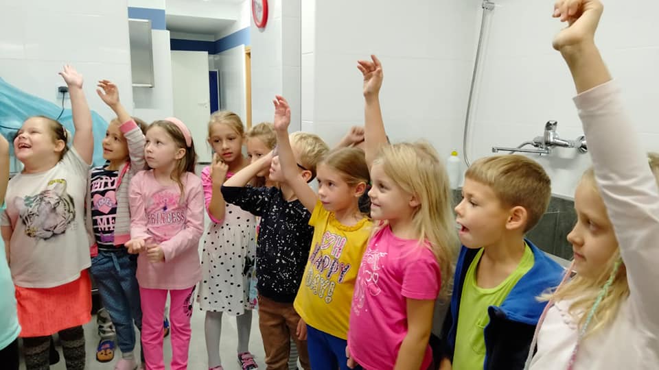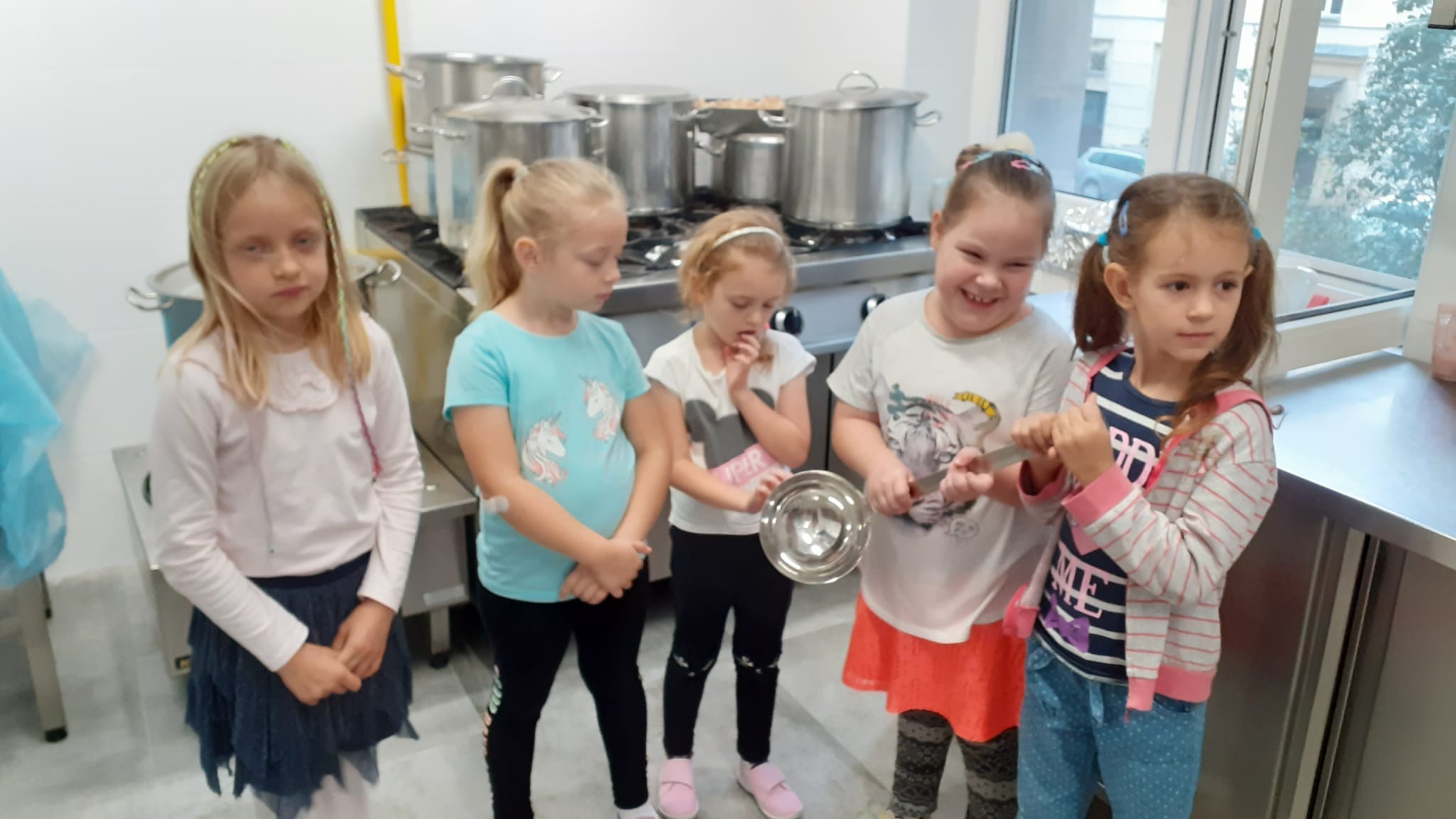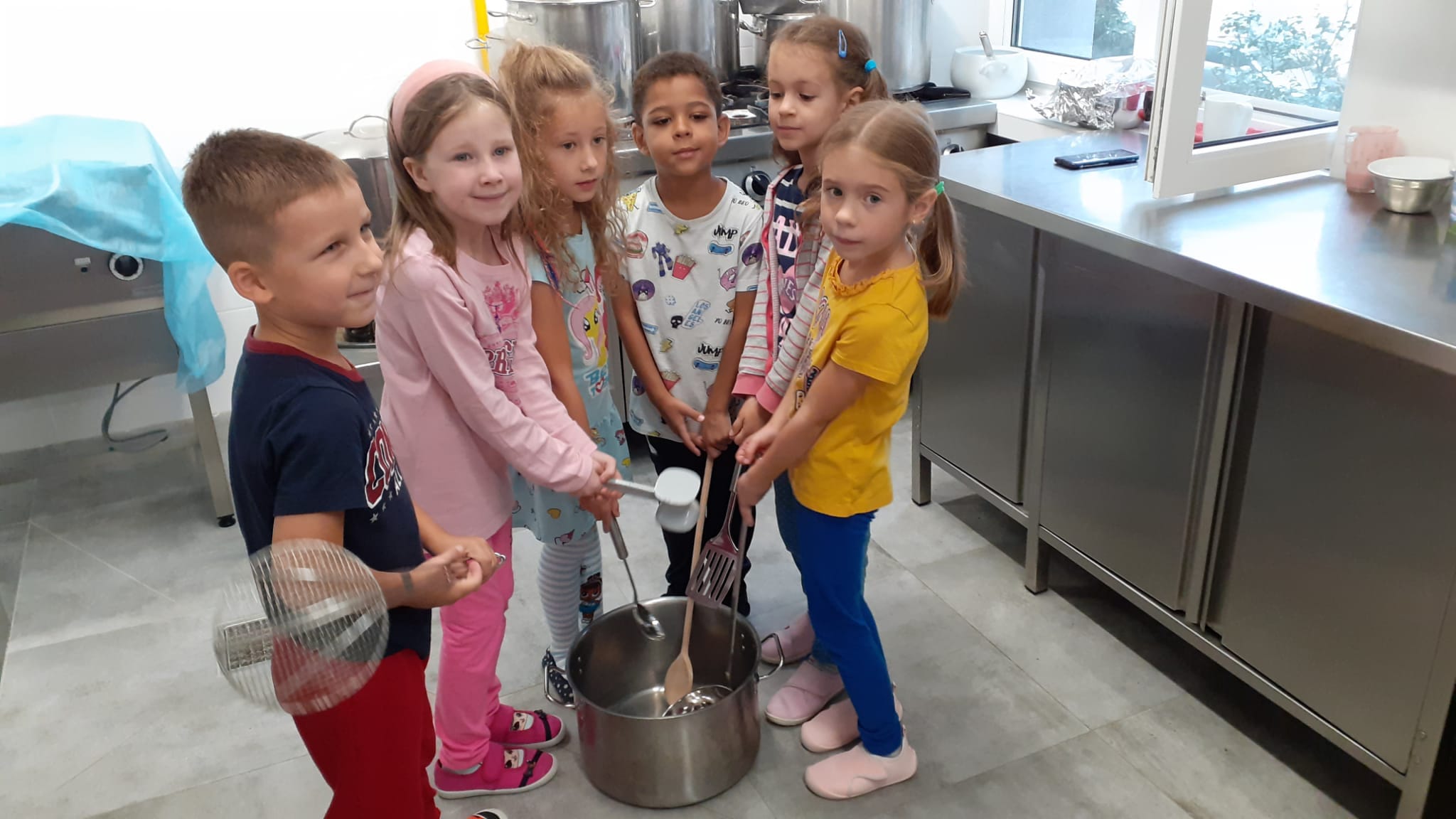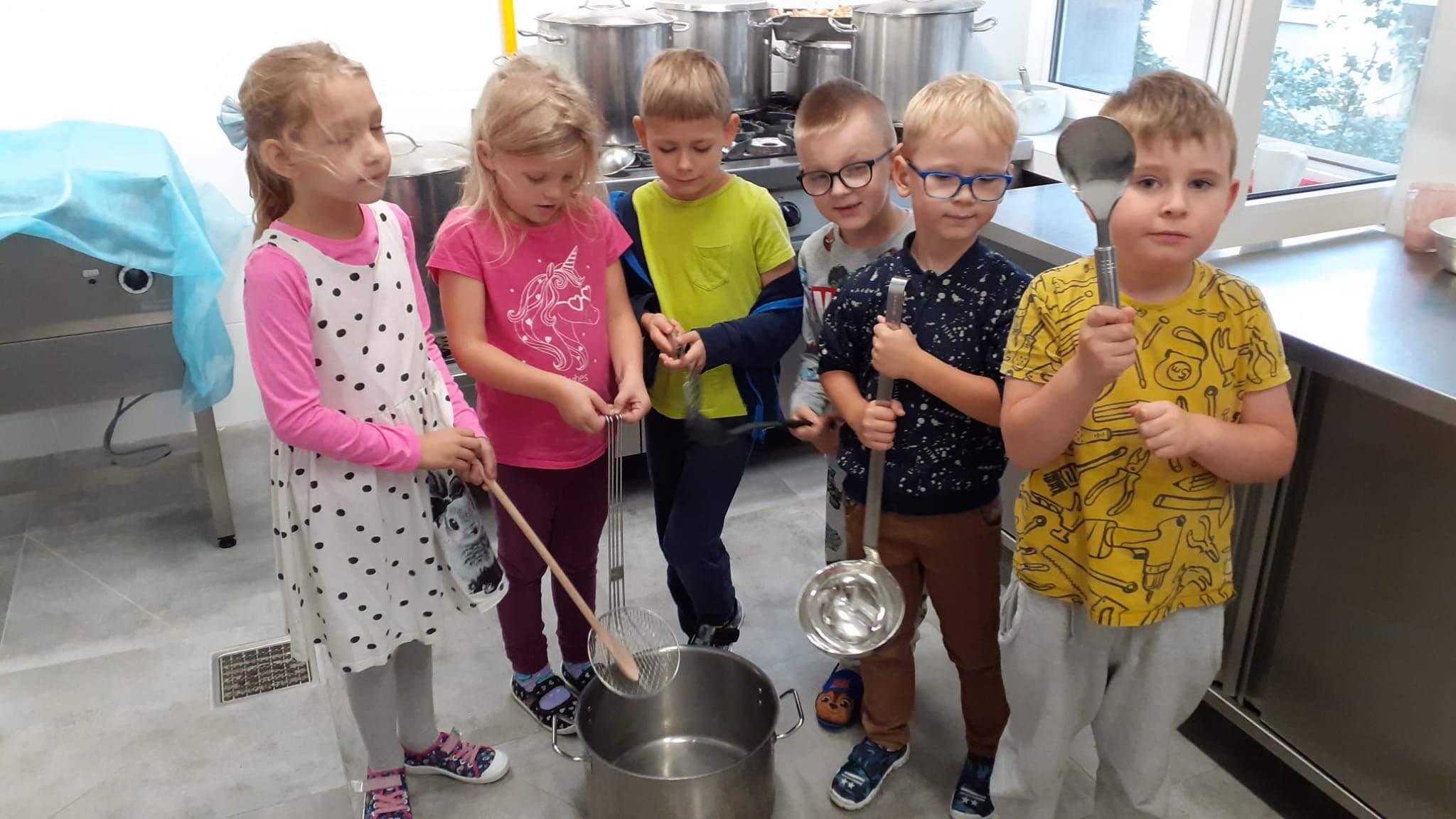 , czyli dzieci z grupy IV, w ramach preorientacji zawodowej zwiedziły kuchnię przedszkolną i miały możliwość porozmawiania z paniami kucharkami: Panią Renią i Panią Iwonką na temat ich pracy. Dzieci poznały sprzęty i naczynia kuchenne, które wydały im się ogromne. Spróbowały również podać paniom kucharkom przepis na zupę. Niektóre doskonale wiedziały jakie warzywa należy do niej wrzucić. Jednym słowem wizyta była „owocna”.![]()