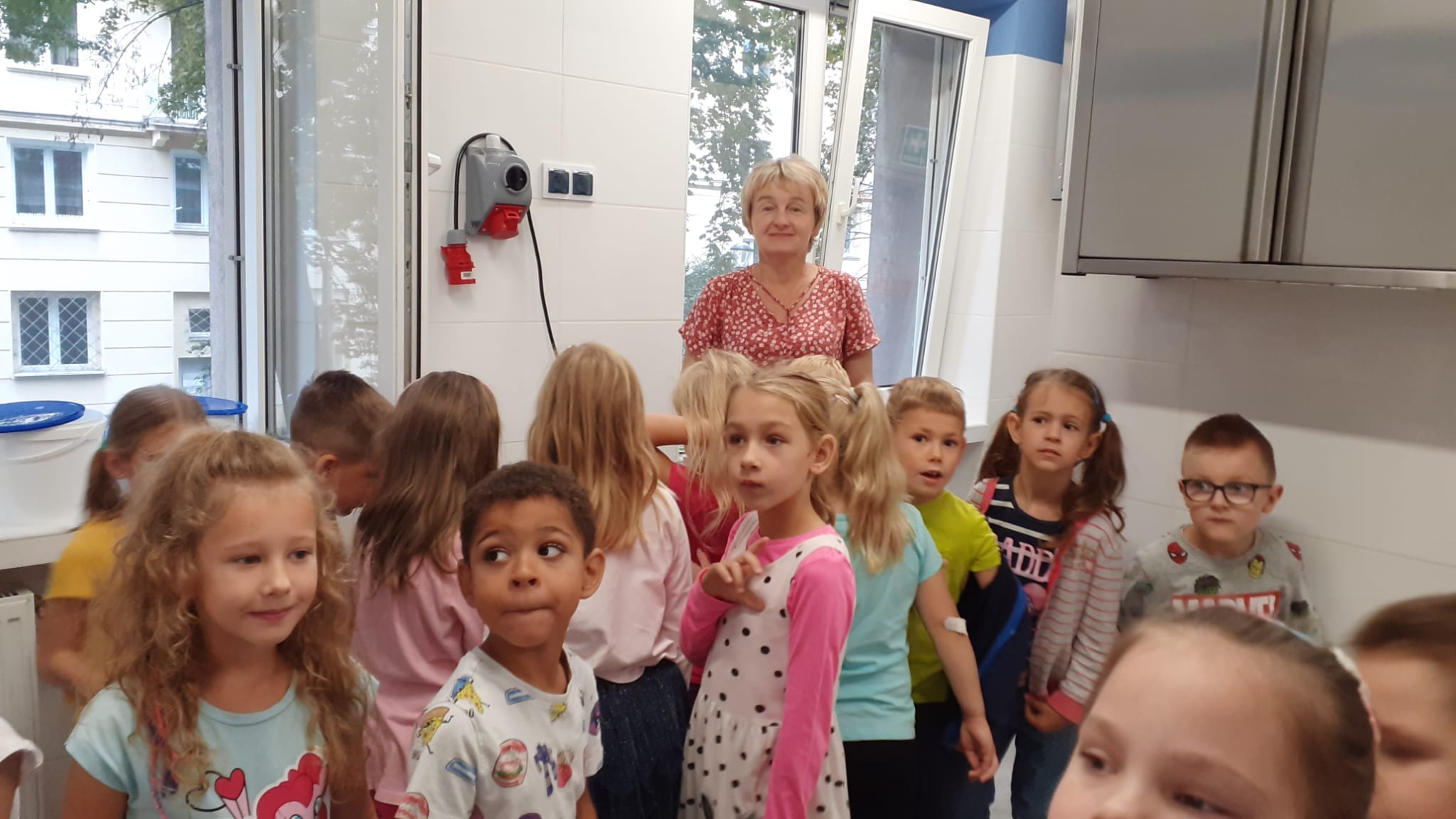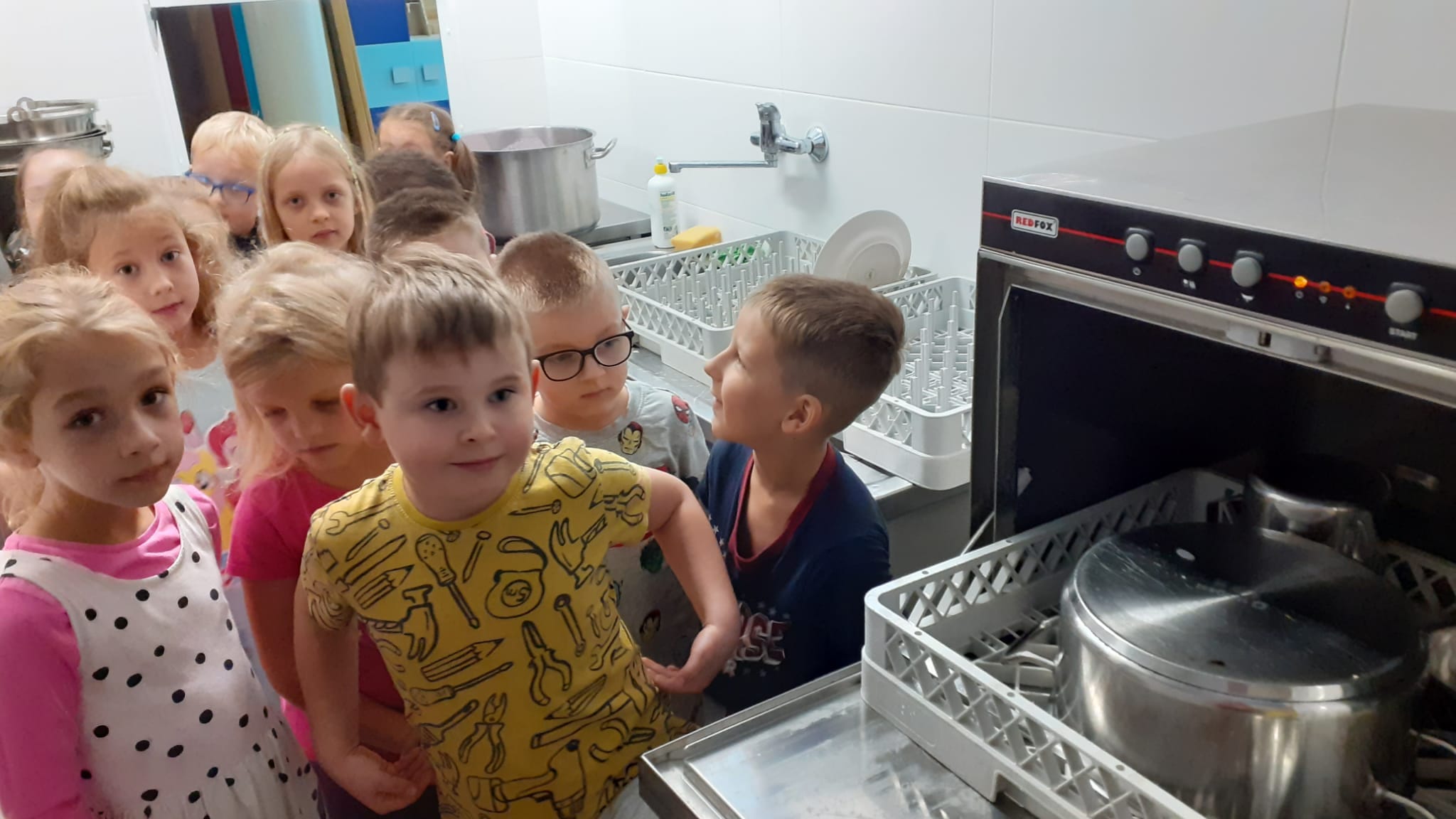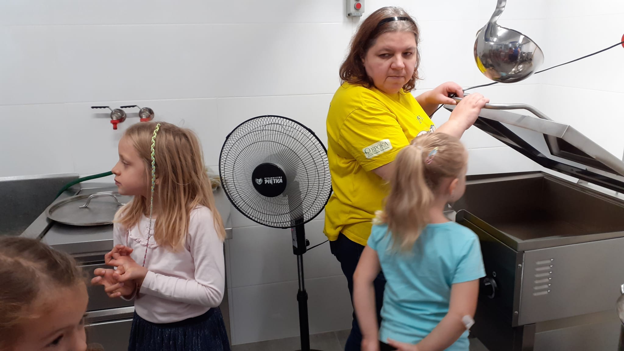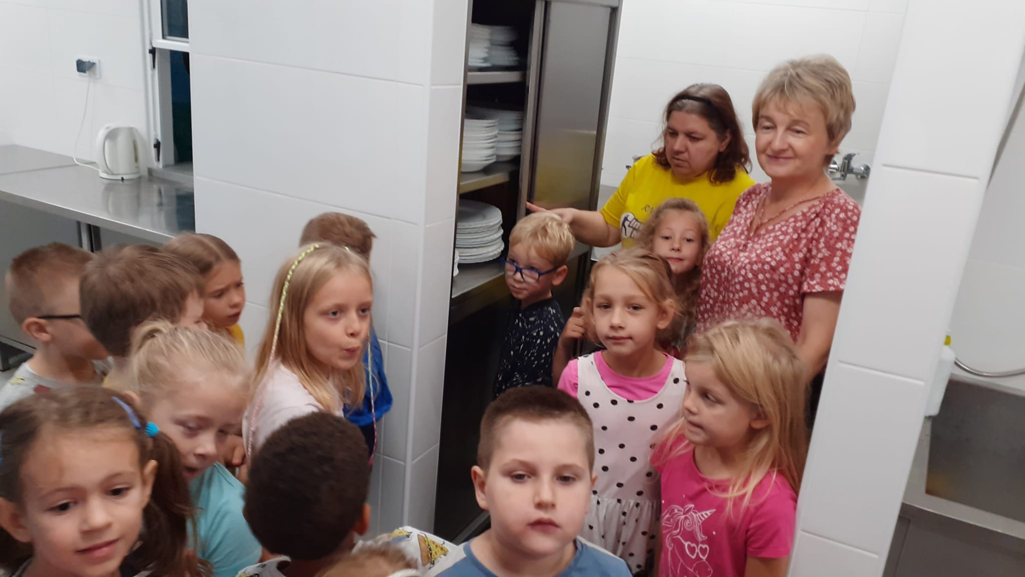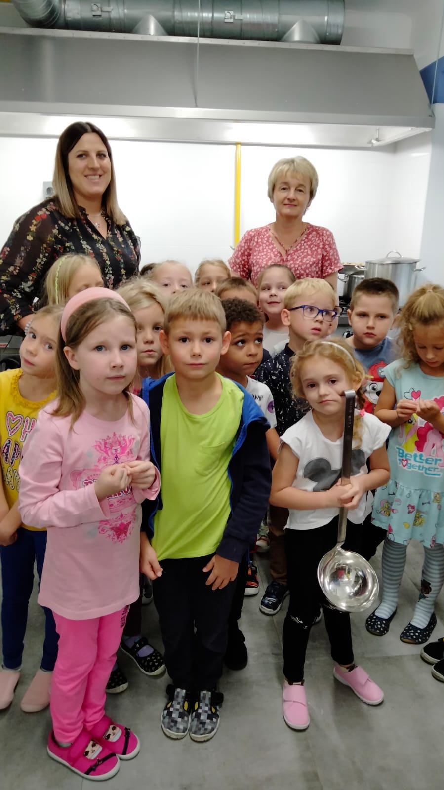 , czyli dzieci z grupy IV, w ramach preorientacji zawodowej zwiedziły kuchnię przedszkolną i miały możliwość porozmawiania z paniami kucharkami: Panią Renią i Panią Iwonką na temat ich pracy. Dzieci poznały sprzęty i naczynia kuchenne, które wydały im się ogromne. Spróbowały również podać paniom kucharkom przepis na zupę. Niektóre doskonale wiedziały jakie warzywa należy do niej wrzucić. Jednym słowem wizyta była „owocna”.![]()