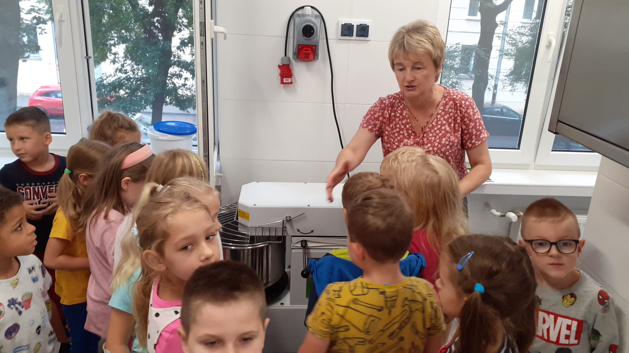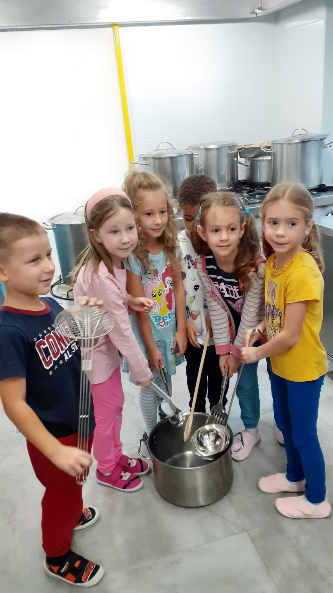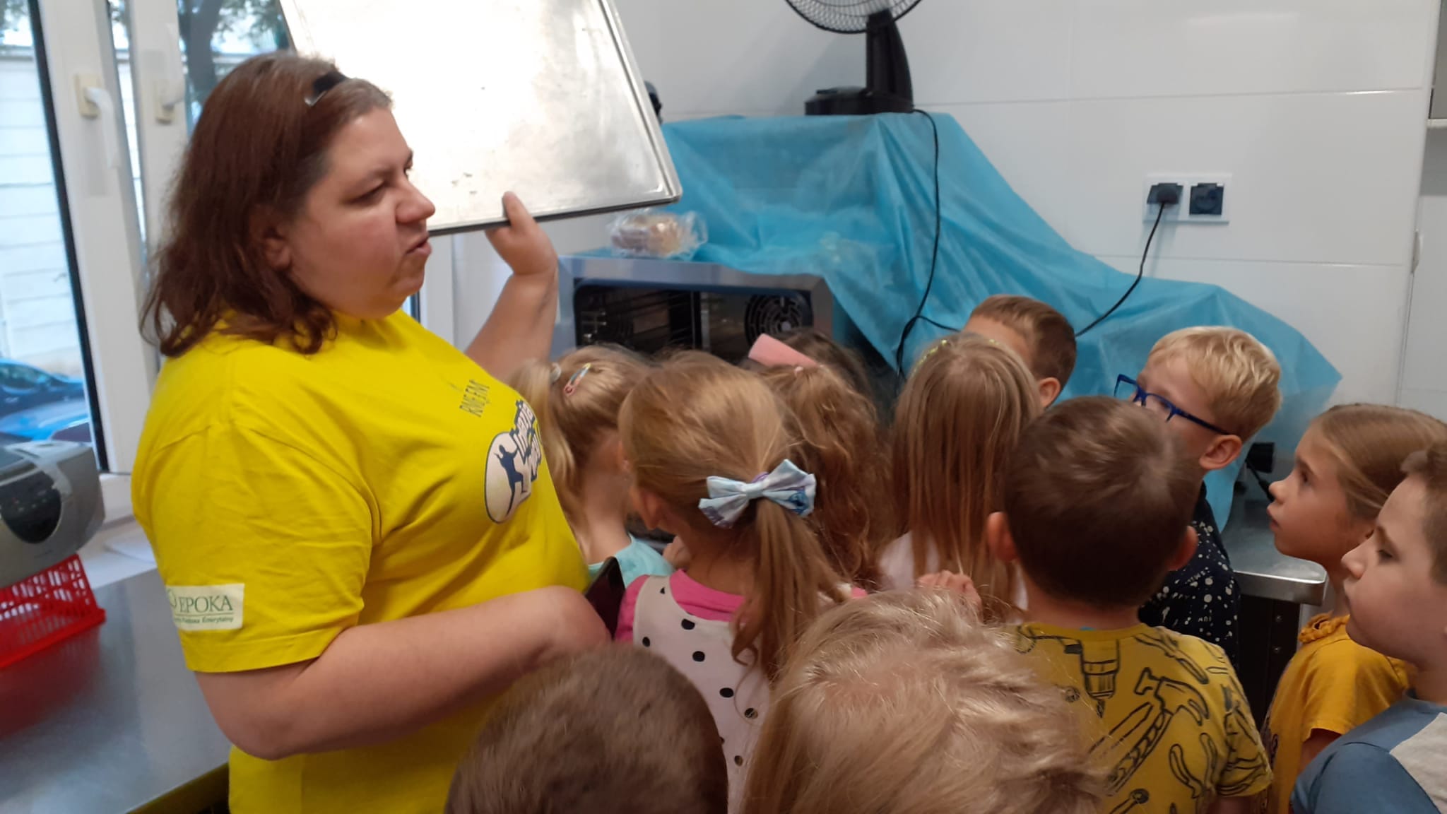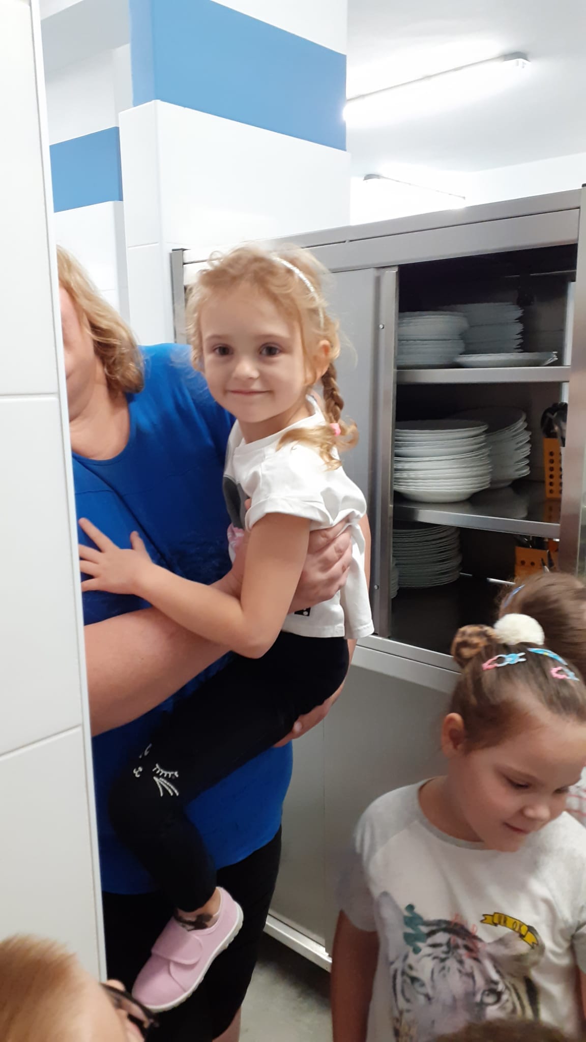 , czyli dzieci z grupy IV, w ramach preorientacji zawodowej zwiedziły kuchnię przedszkolną i miały możliwość porozmawiania z paniami kucharkami: Panią Renią i Panią Iwonką na temat ich pracy. Dzieci poznały sprzęty i naczynia kuchenne, które wydały im się ogromne. Spróbowały również podać paniom kucharkom przepis na zupę. Niektóre doskonale wiedziały jakie warzywa należy do niej wrzucić. Jednym słowem wizyta była „owocna”.![]()