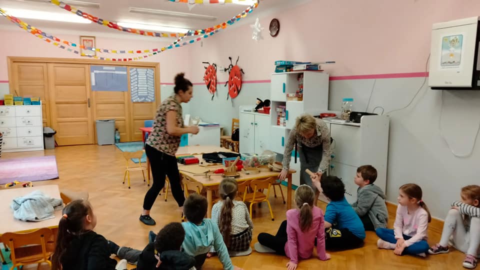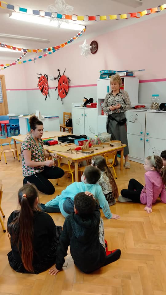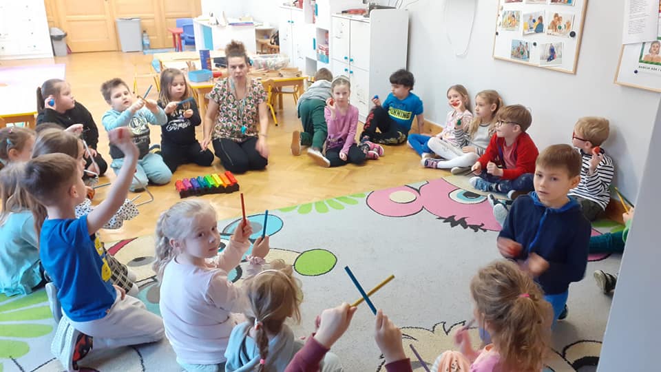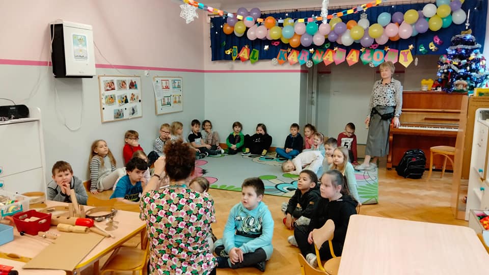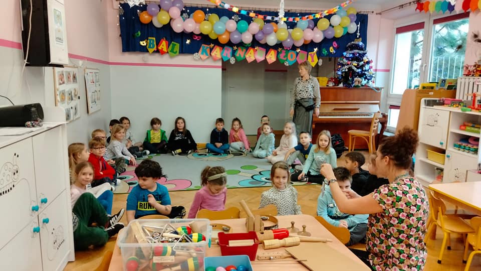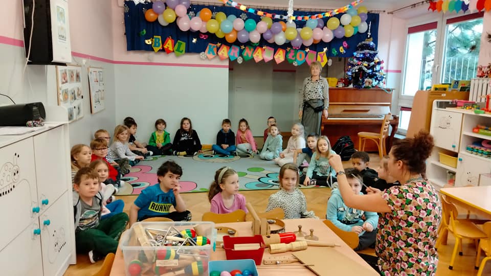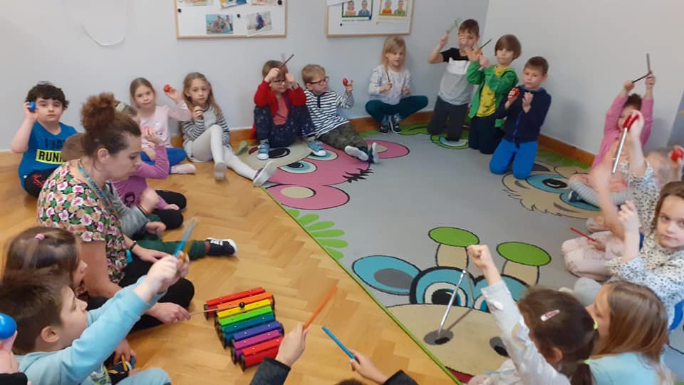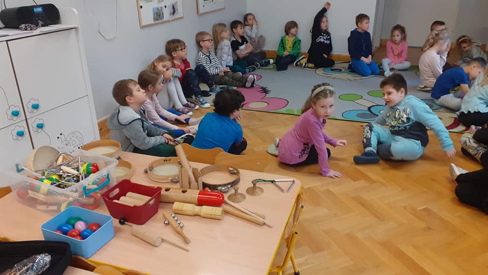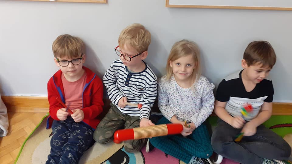 w ramach projektu muzycznego wzięły udział w zajęciach edukacyjnych ” Czy znasz ten instrument? Dzieci dowiedziały się m.in. czym różnią się instrumenty strunowe od perkusyjnych , poznały nowe instrumenty oraz utrwaliły nazwy i brzmienie już znanych.