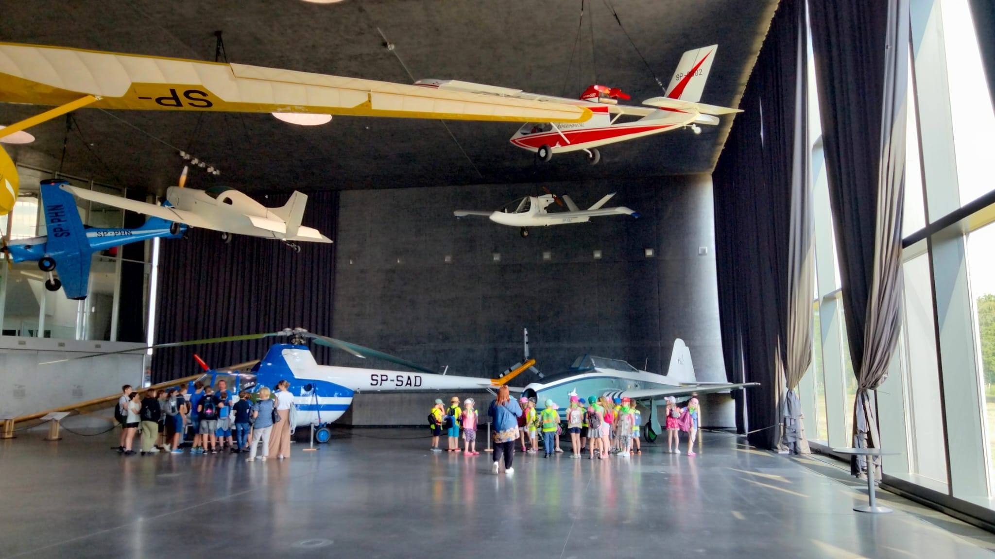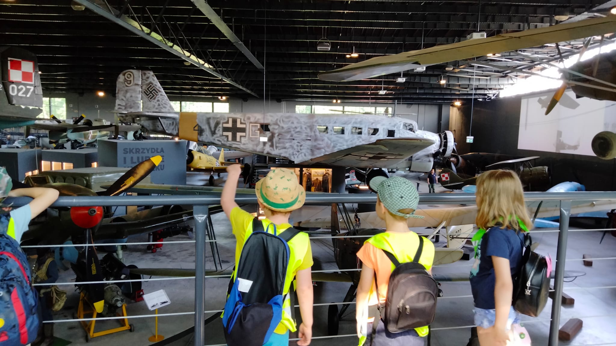 W czasie zwiedzania muzeum dzieci oprócz ekspozycji zewnętrznej miały możliwość obejrzenia wystaw znajdujących się w hangarach m.in. Archeologii lotnictwa, historii lotnictwa itp. Chętni mogli sprawdzić swoje umiejętności w symulatorze stanowiska bocznego strzelca bombowca B-17. Statkom powietrznym towarzyszyły silniki, broń i pojazdy lotniskowe. Ale historia lotnictwa to nie tylko sprzęt, również ludzie. W gablotach można było zobaczyć mundury, dokumenty, odznaczenia i inne pamiątki po lotnikach, elementy wyposażenia samolotów oraz umundurowanie i wyposażenie wojsk powietrzno-desantowych.