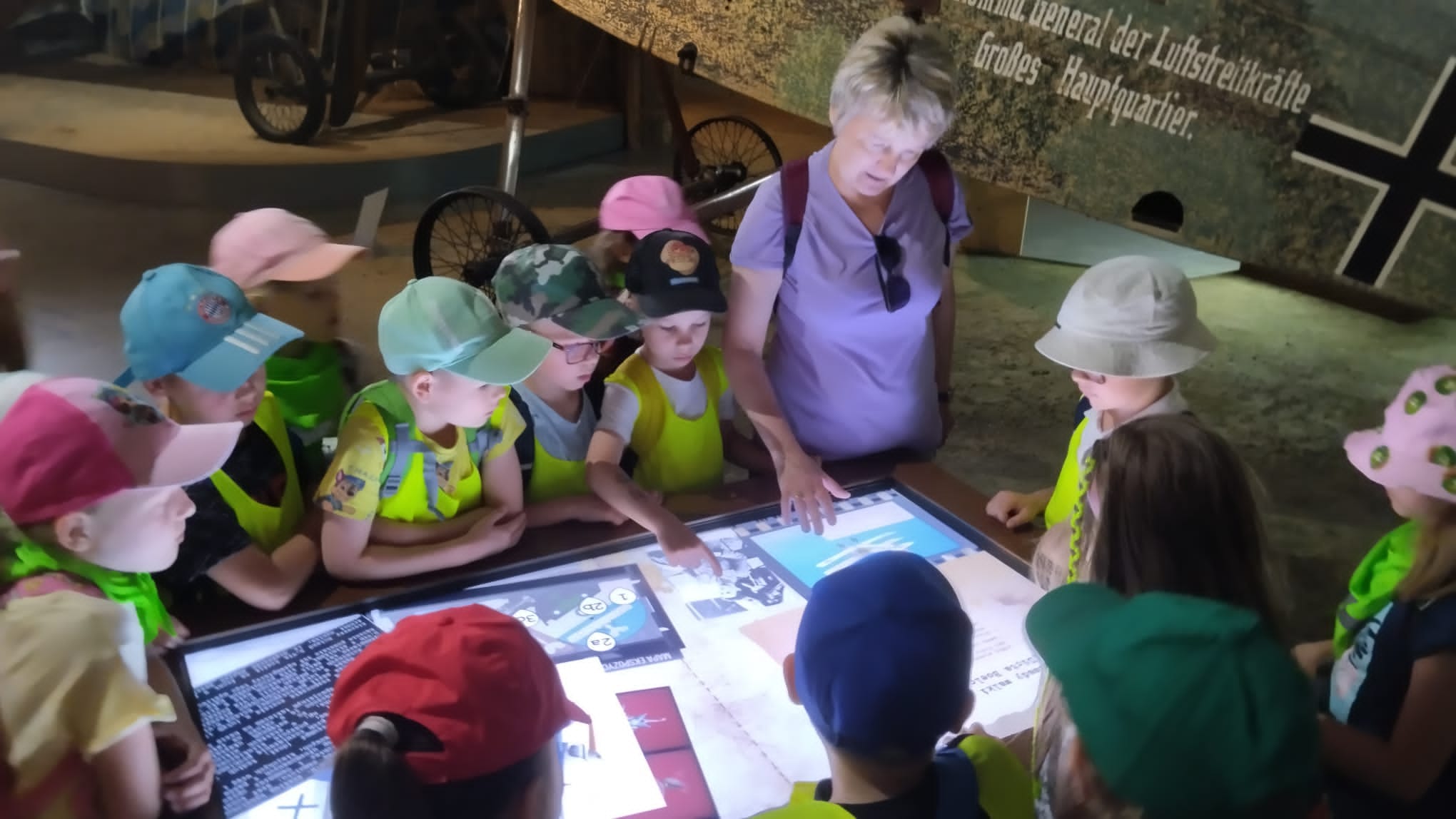 W ramach wycieczki dzieci miały okazję zobaczyć m. in. jedyny na świecie egzemplarz samolotu myśliwego PZL P.11.c, który należał do 121 Eskadry Myśliwskiej II Pułku Lotniczego w Krakowie i brał udział w kampanii wrześniowej w 1939. Przedszkolaki mogły również obejrzeć wnętrze samolotu „papieskiego” którym latał Jan Paweł II w czasie wizyt w Polsce. Przedszkolaki oglądały samoloty wojskowe ,bombowce, odrzutowce, śmigłowce, pasażerskie i rolnicze. Długo można wymieniać różne atrakcje…Najważniejsze, że wszyscy wrócili zadowoleni i uśmiechnięci. Wycieczka była pełna wrażeń, chłopcy zachwyceni…Wszyscy prawie odlecieliśmy…co widać na poszczególnych zdjęciach…