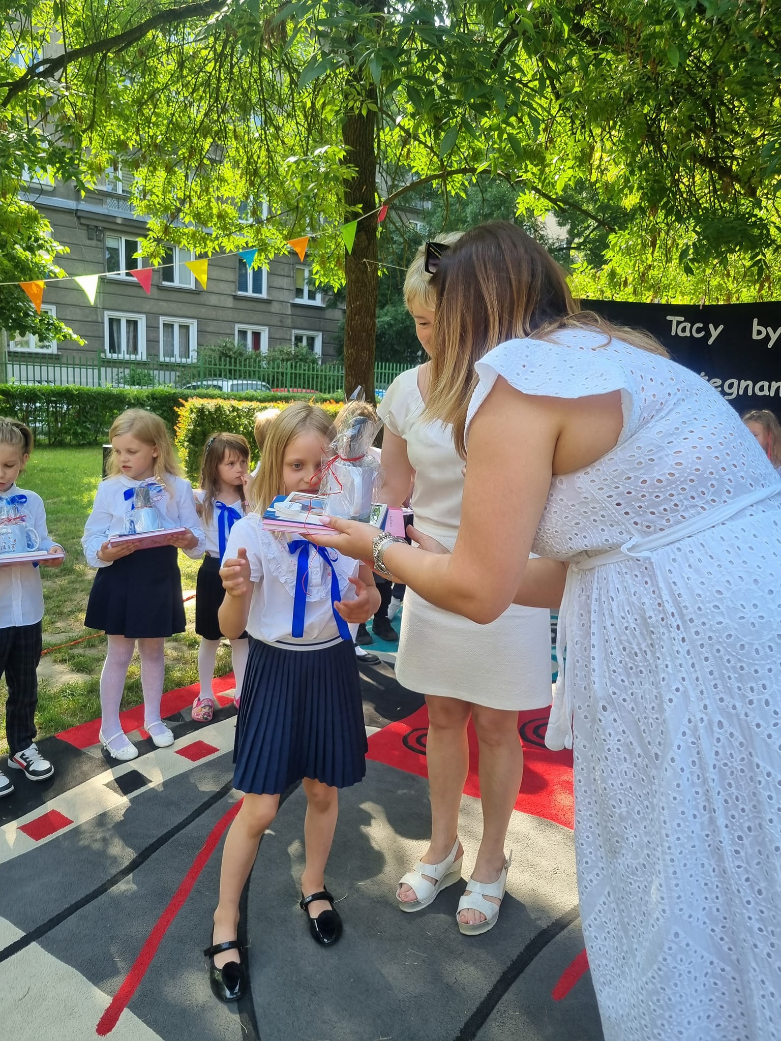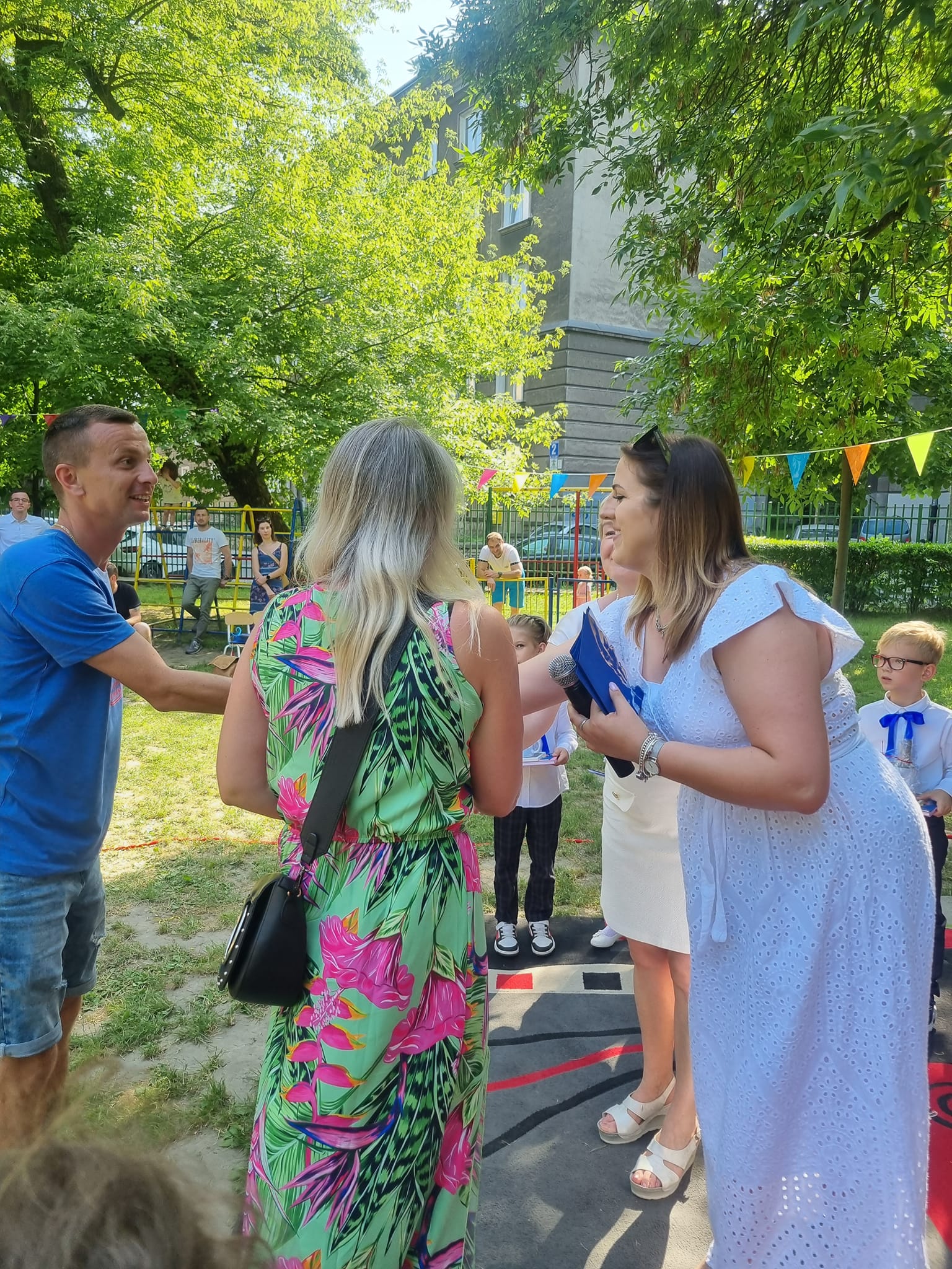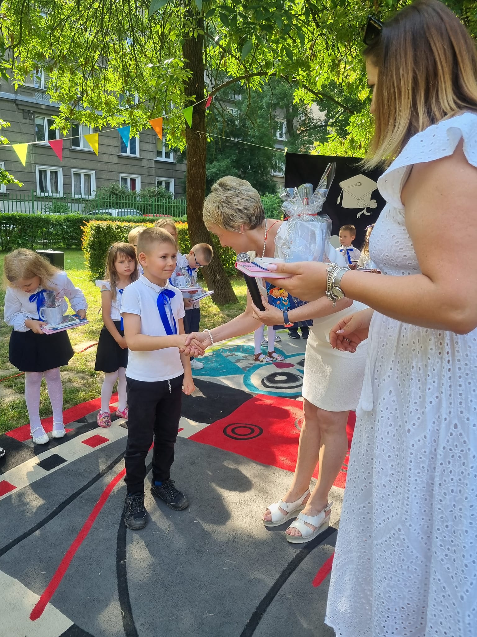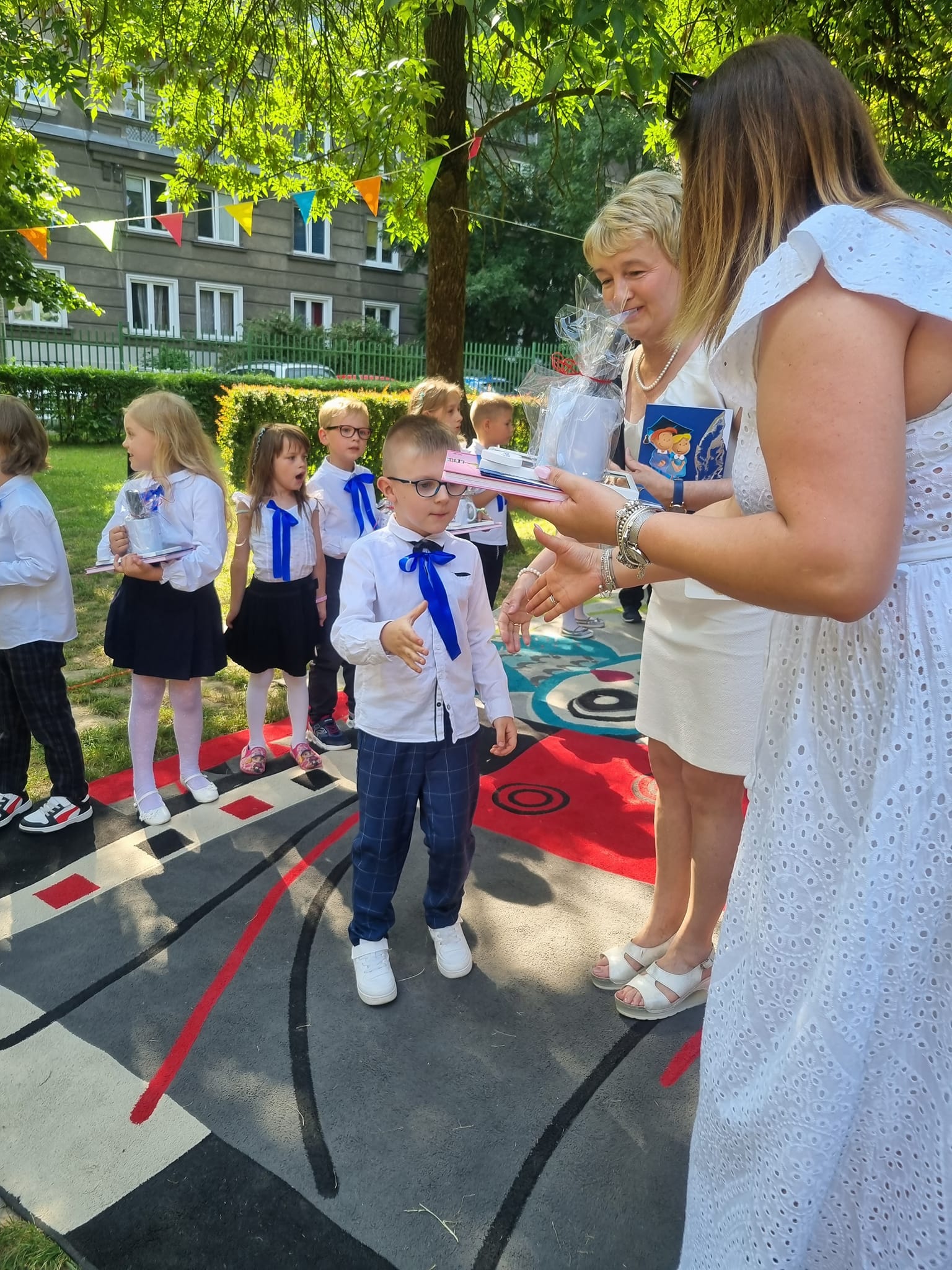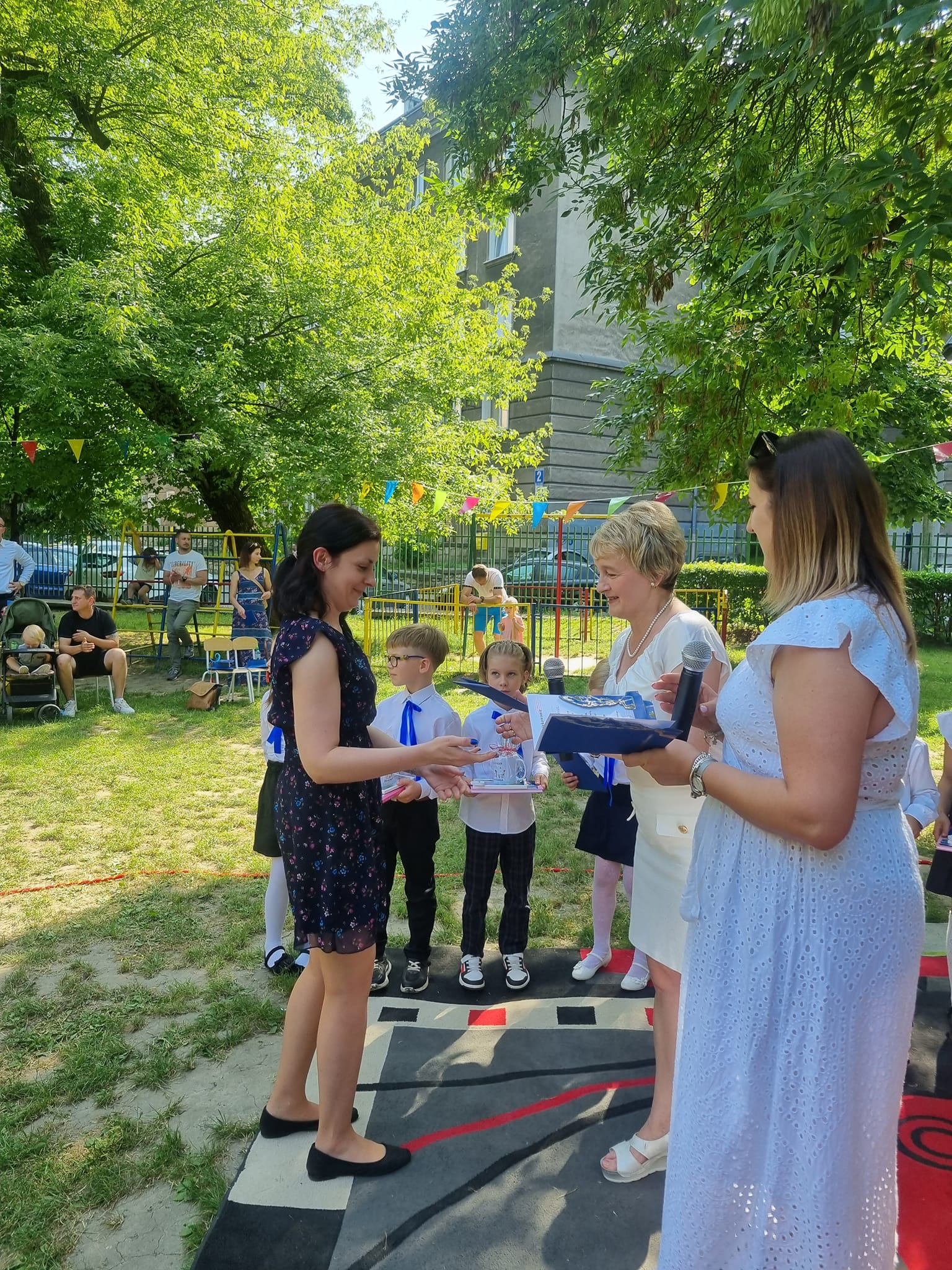 Po występie dzieci otrzymały oprócz biretów piękne dyplomy, książki, oryginalne kubki ze swoimi imionami i zestawy długopisów z ołówkami, a rodzice, którzy aktywnie angażowali się w życie przedszkola -podziękowania . Pani Kamila pożegnała uroczyście wszystkie dzieci i rodziców życząc dzieciom w imieniu Pani Dyrektor, nauczycieli i pracowników przedszkola dużo sukcesów w szkole , spełnienia marzeń, realizowania swoich pasji i zamierzeń. Rodzice ze swej strony również podziękowali Pani Dyrektor, Nauczycielkom oraz Pracownikom przedszkola za wspólnie spędzone lata.