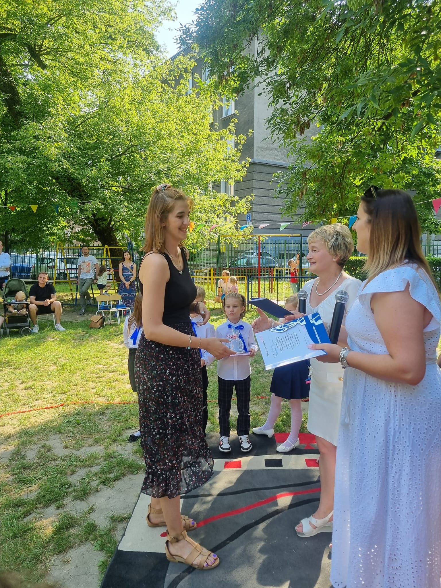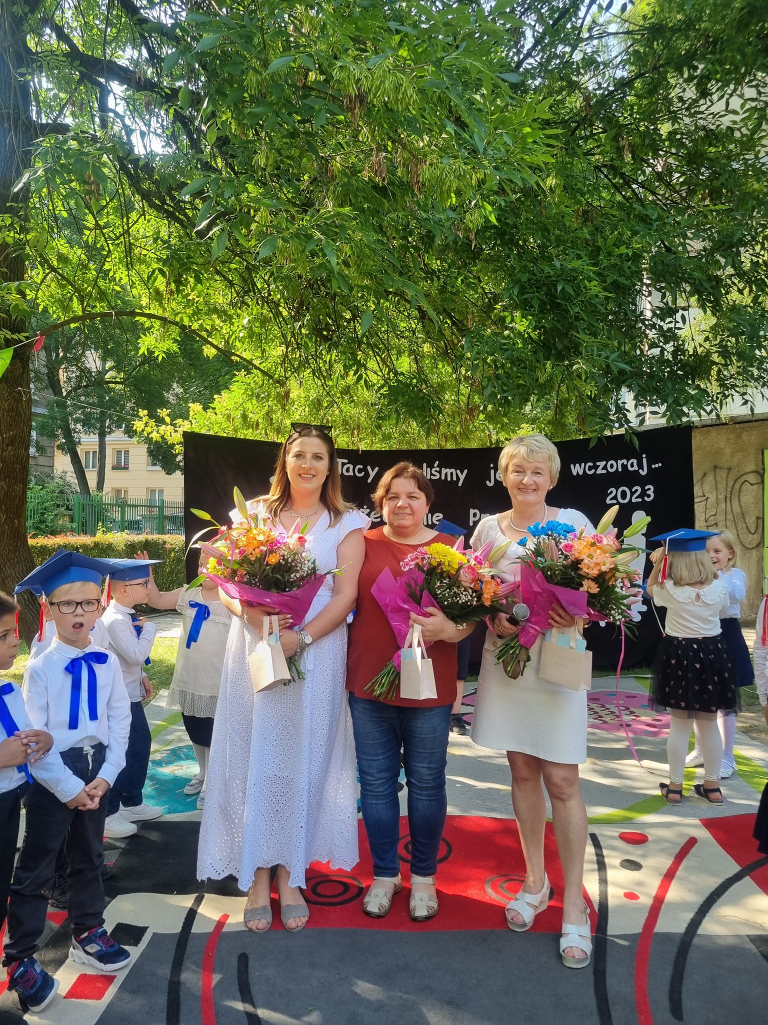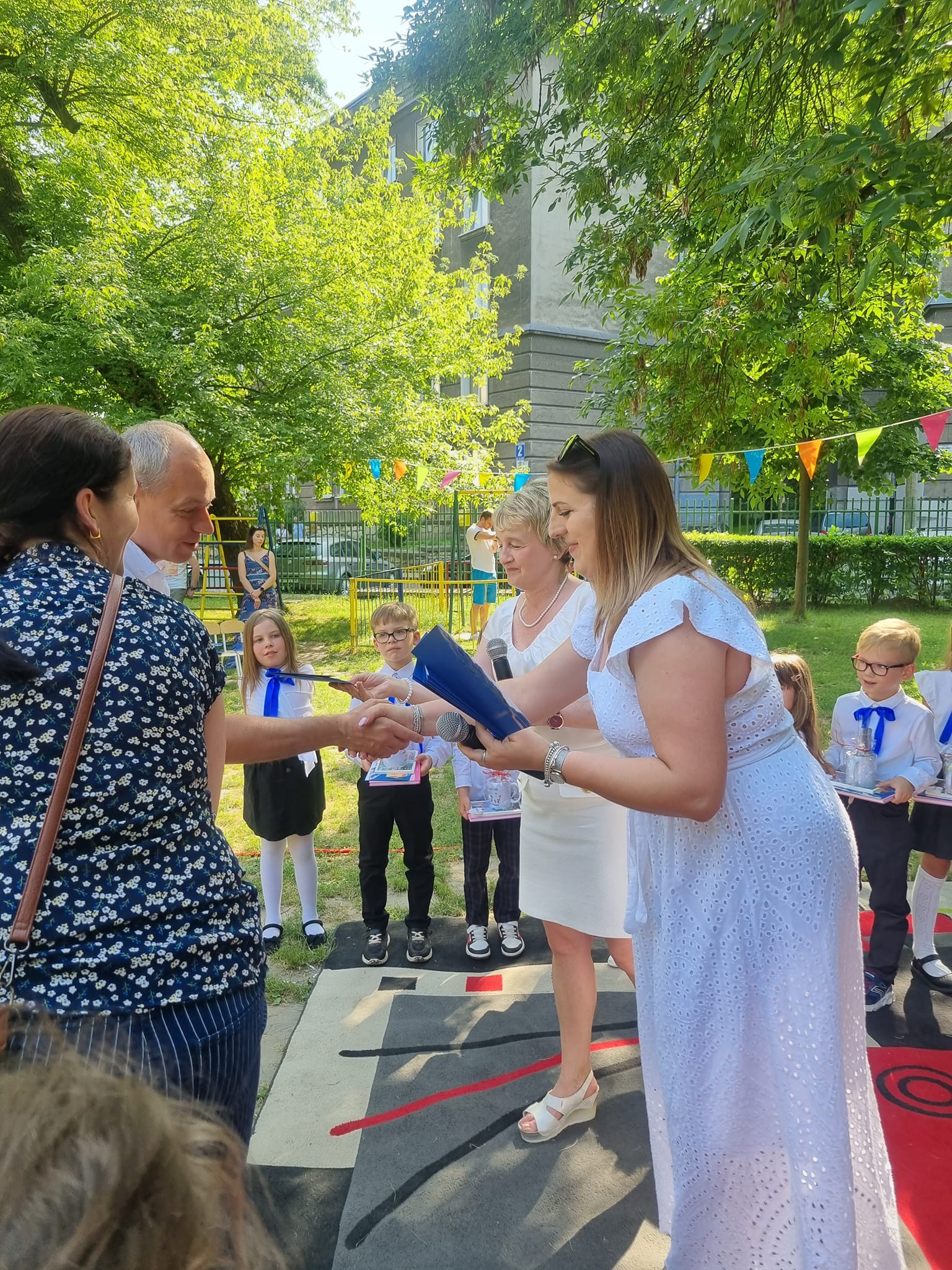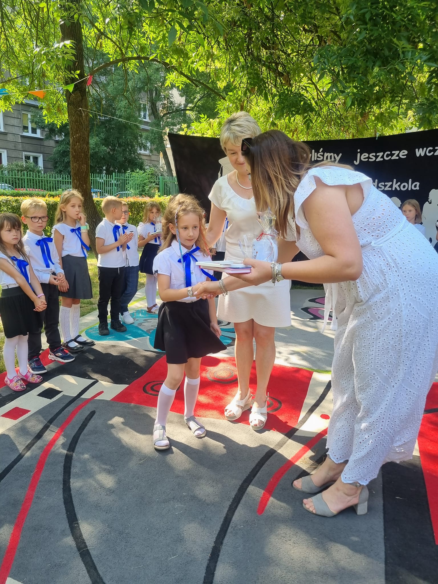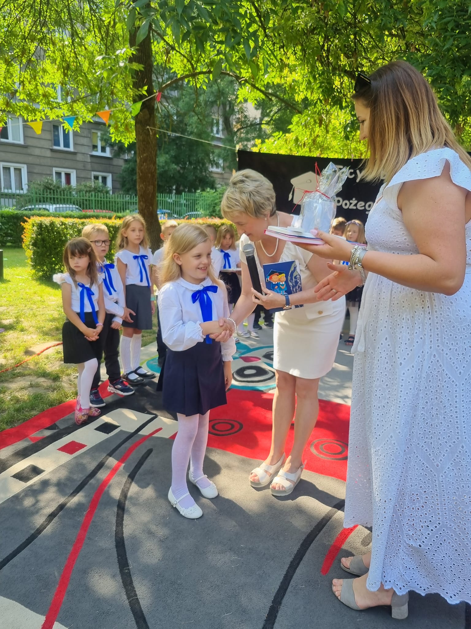 Po występie dzieci otrzymały oprócz biretów piękne dyplomy, książki, oryginalne kubki ze swoimi imionami i zestawy długopisów z ołówkami, a rodzice, którzy aktywnie angażowali się w życie przedszkola -podziękowania . Pani Kamila pożegnała uroczyście wszystkie dzieci i rodziców życząc dzieciom w imieniu Pani Dyrektor, nauczycieli i pracowników przedszkola dużo sukcesów w szkole , spełnienia marzeń, realizowania swoich pasji i zamierzeń. Rodzice ze swej strony również podziękowali Pani Dyrektor, Nauczycielkom oraz Pracownikom przedszkola za wspólnie spędzone lata.