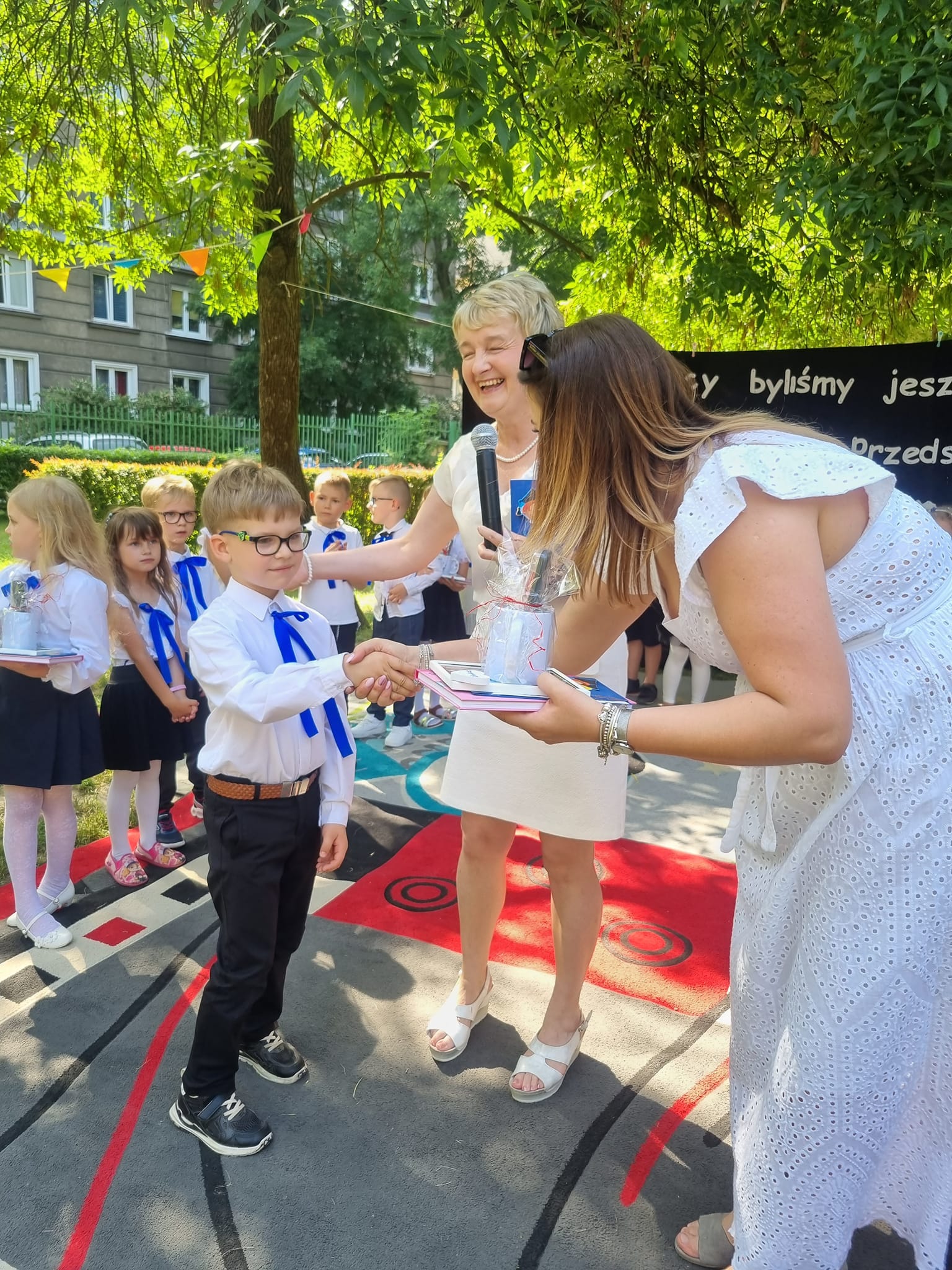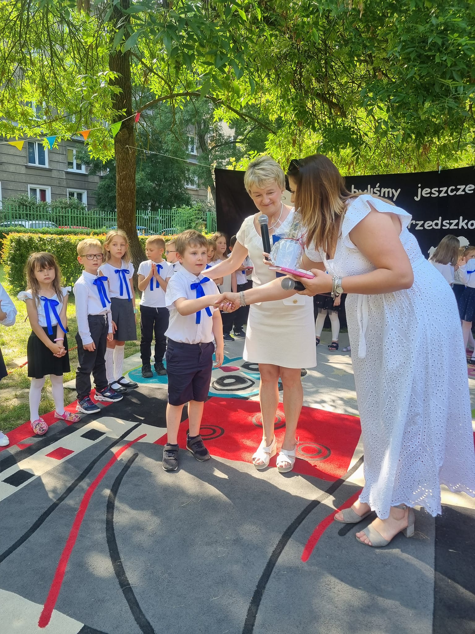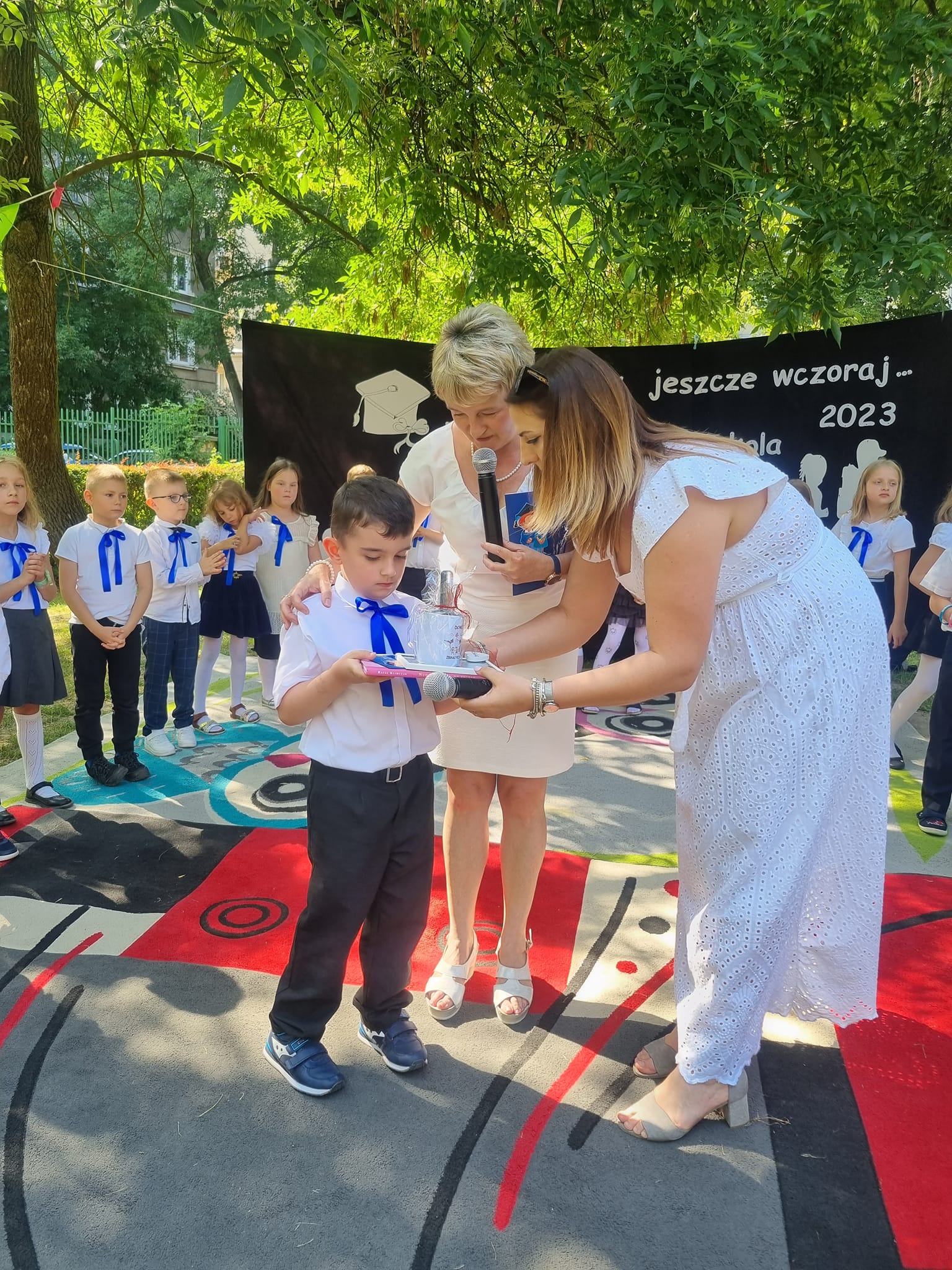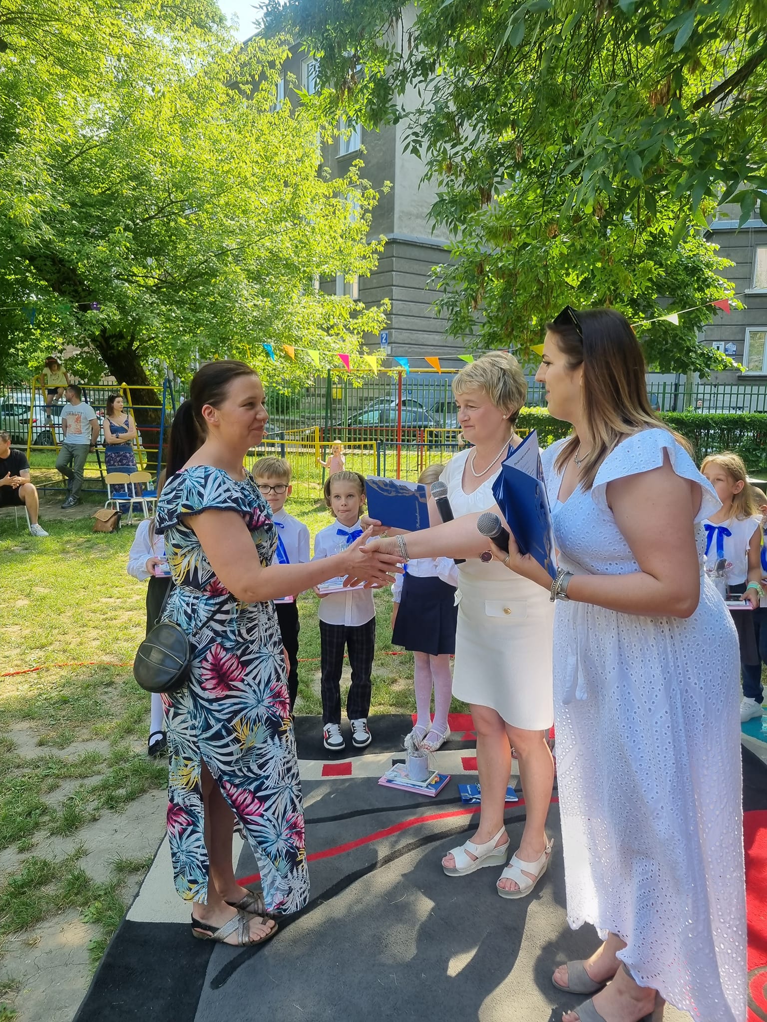 Po występie dzieci otrzymały oprócz biretów piękne dyplomy, książki, oryginalne kubki ze swoimi imionami i zestawy długopisów z ołówkami, a rodzice, którzy aktywnie angażowali się w życie przedszkola -podziękowania . Pani Kamila pożegnała uroczyście wszystkie dzieci i rodziców życząc dzieciom w imieniu Pani Dyrektor, nauczycieli i pracowników przedszkola dużo sukcesów w szkole , spełnienia marzeń, realizowania swoich pasji i zamierzeń. Rodzice ze swej strony również podziękowali Pani Dyrektor, Nauczycielkom oraz Pracownikom przedszkola za wspólnie spędzone lata.