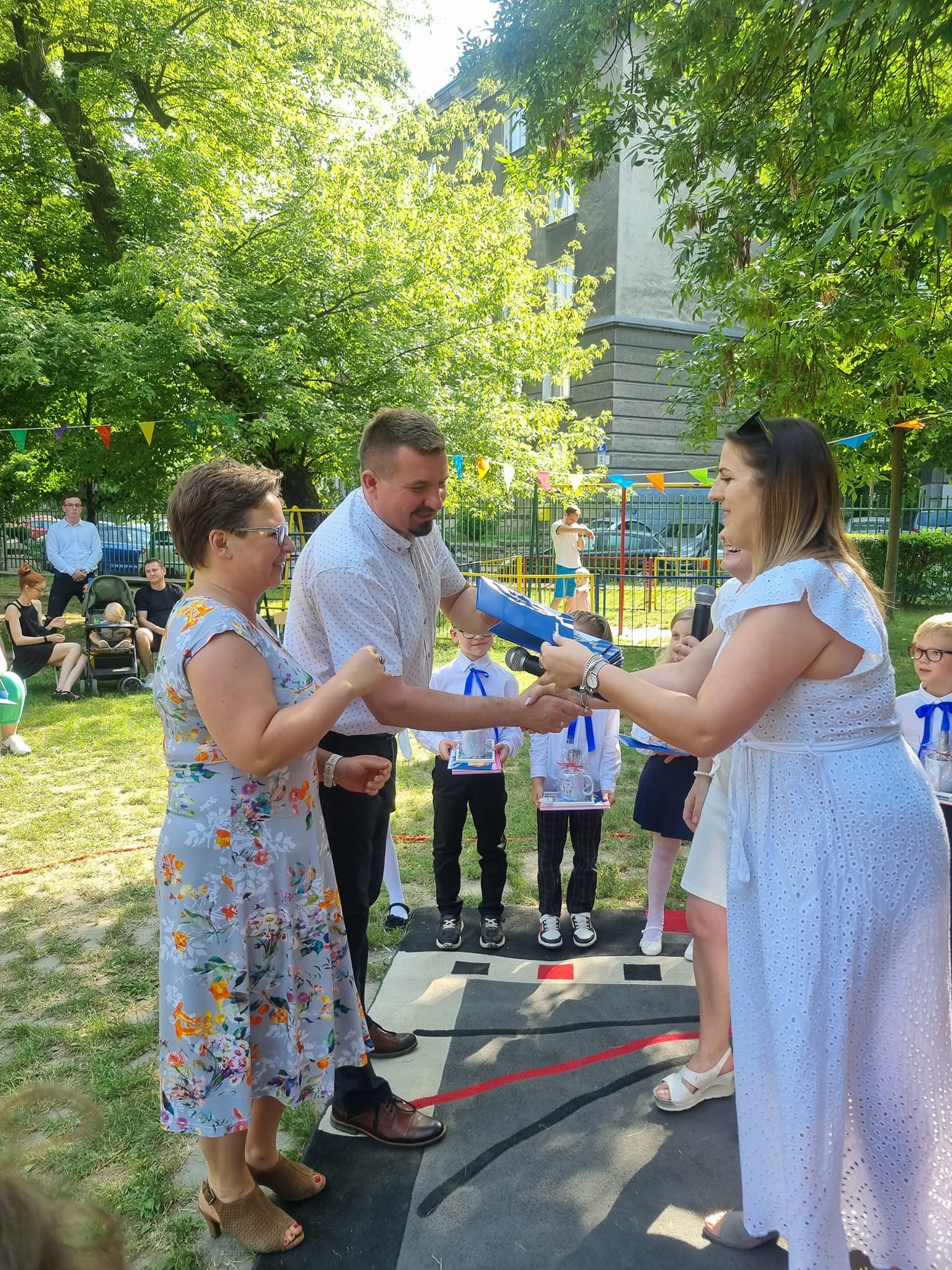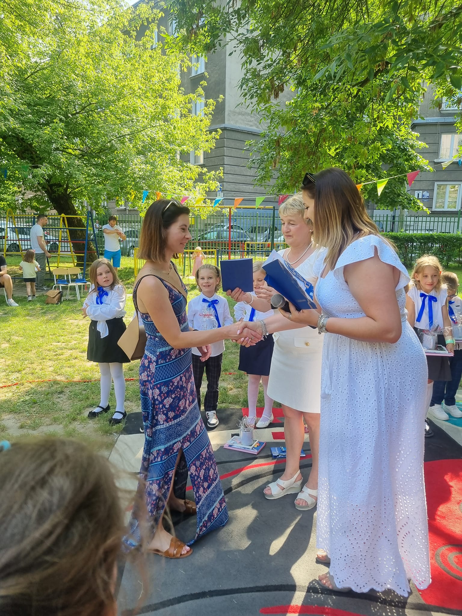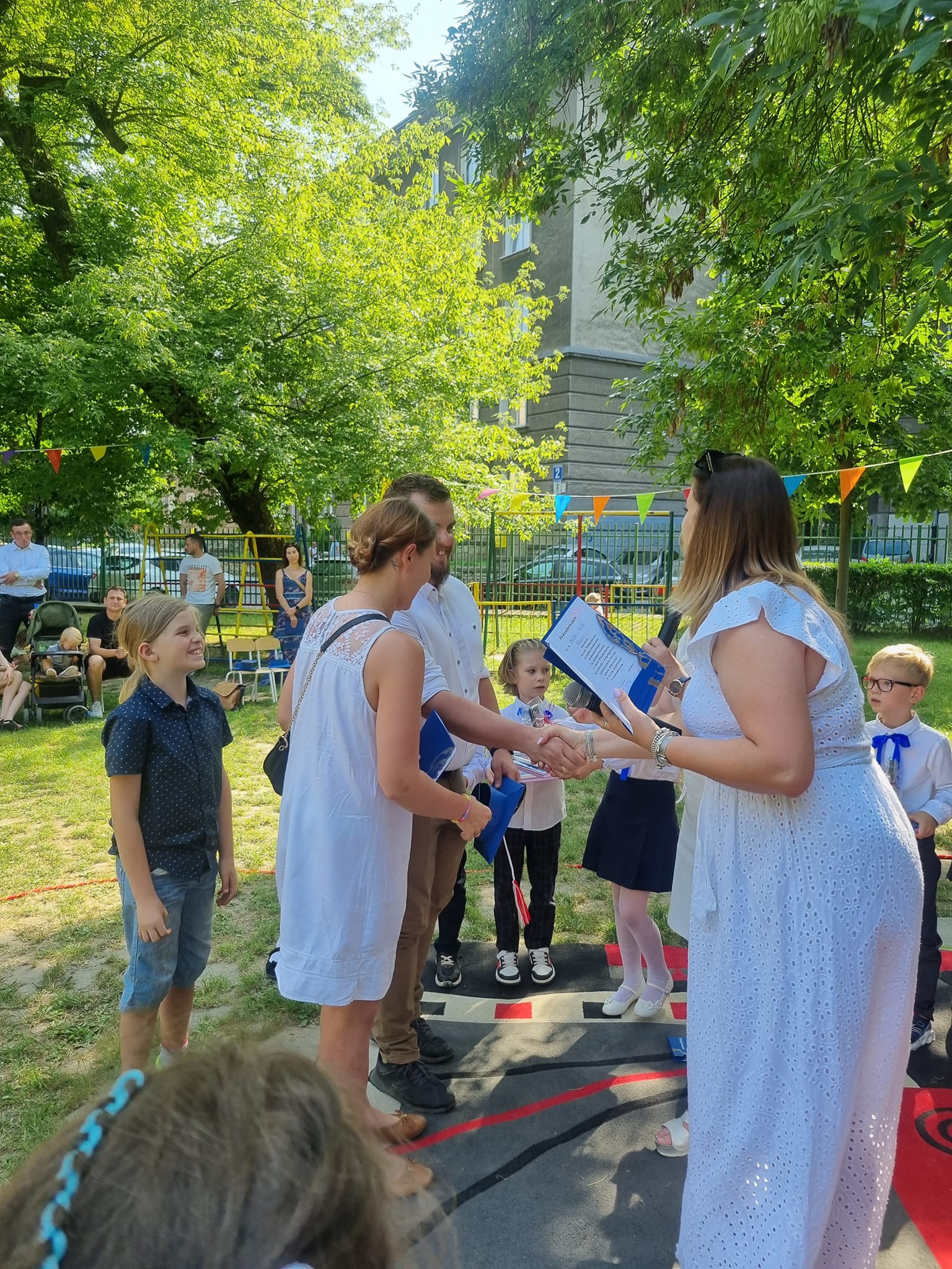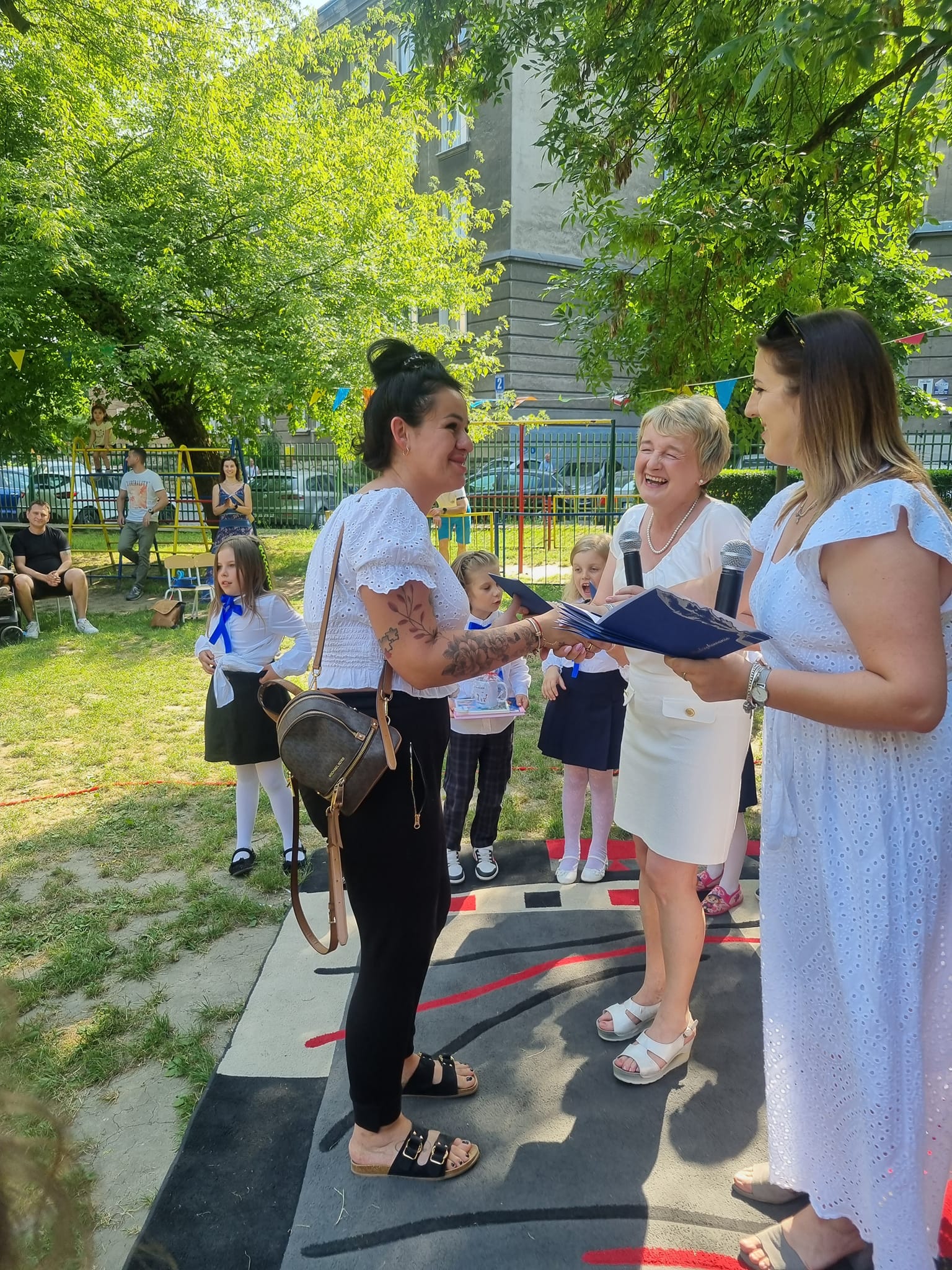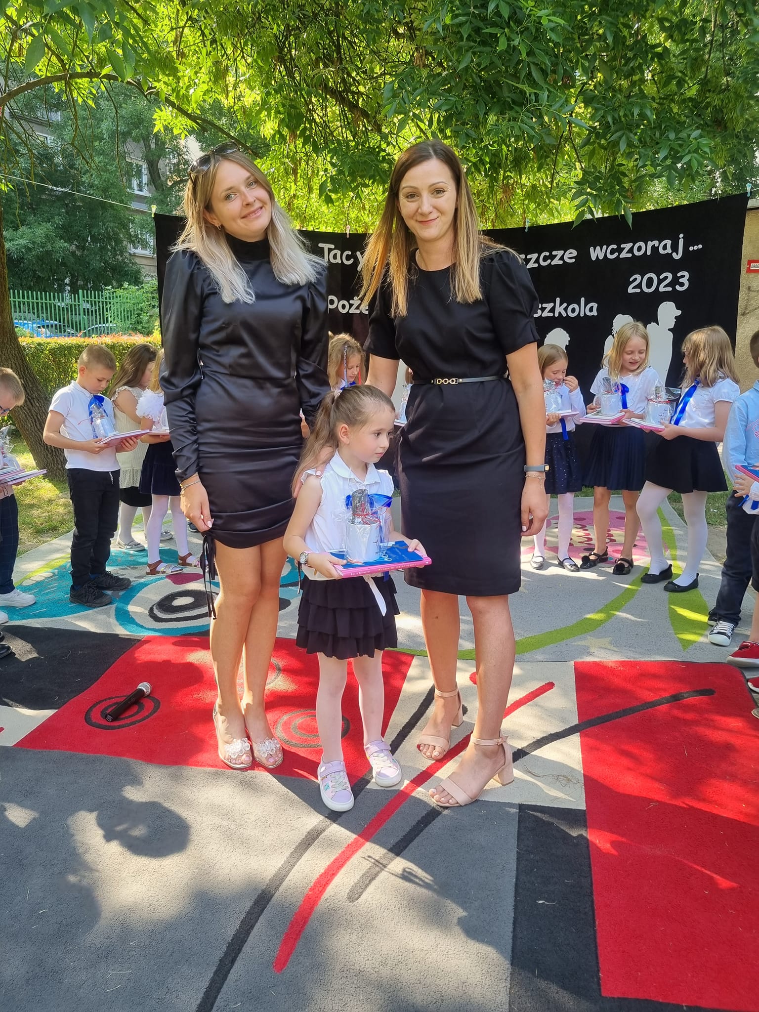 Po występie dzieci otrzymały oprócz biretów piękne dyplomy, książki, oryginalne kubki ze swoimi imionami i zestawy długopisów z ołówkami, a rodzice, którzy aktywnie angażowali się w życie przedszkola -podziękowania . Pani Kamila pożegnała uroczyście wszystkie dzieci i rodziców życząc dzieciom w imieniu Pani Dyrektor, nauczycieli i pracowników przedszkola dużo sukcesów w szkole , spełnienia marzeń, realizowania swoich pasji i zamierzeń. Rodzice ze swej strony również podziękowali Pani Dyrektor, Nauczycielkom oraz Pracownikom przedszkola za wspólnie spędzone lata.