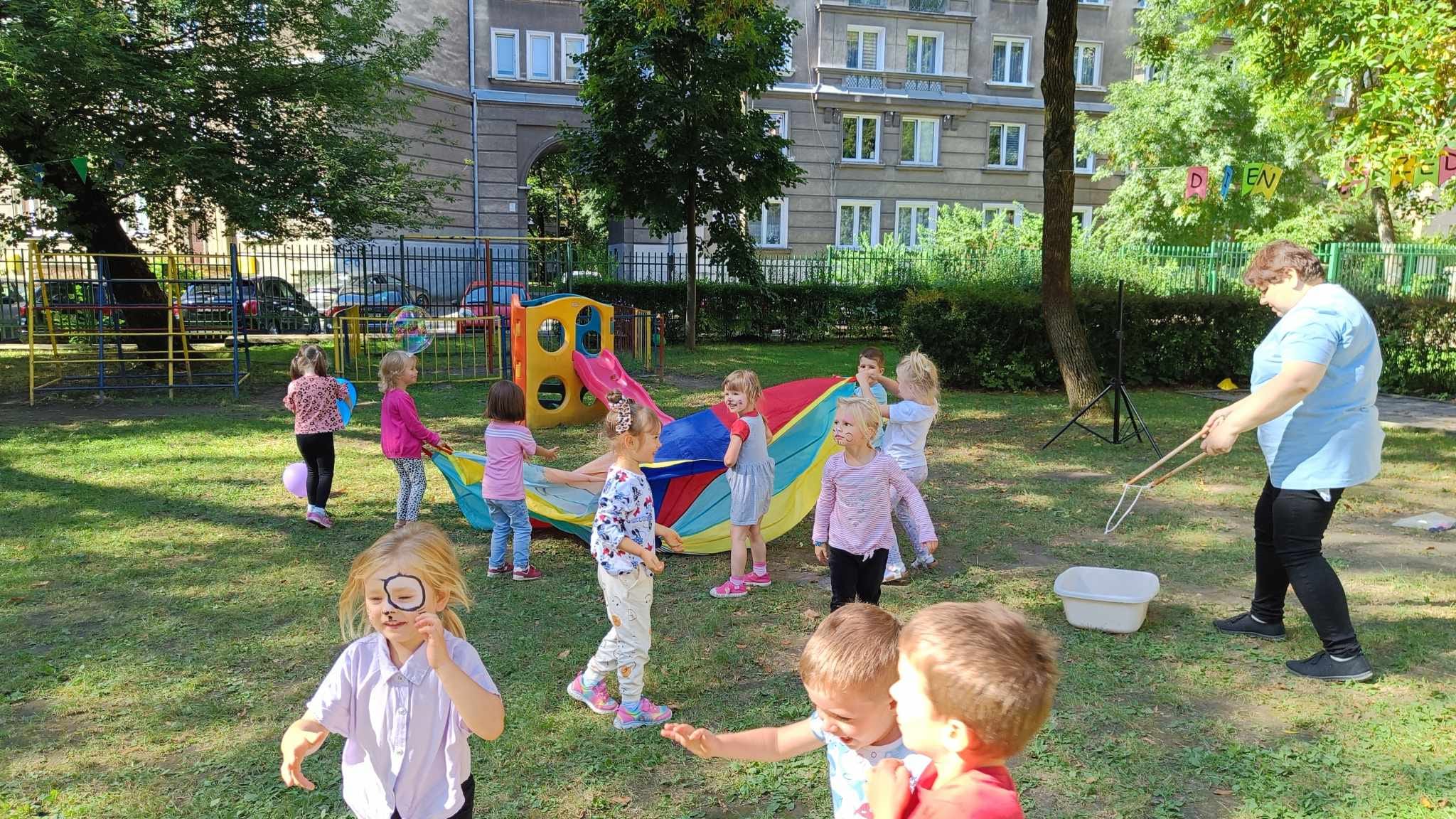 Na przedszkolaków czekało dziś wiele atrakcji. Animacje taneczne z Panią Kasia i Asia . Zabawy z chusta animacyjną, balonami, , malowanie twarzy . Lecz największa atrakcja było poszukiwanie skarbów , dzieci zmierzyły się z zadaniami i zagadkami , które były ukryte w całym przedszkolu , a na końcu dzieci znalazły upragniony skarb