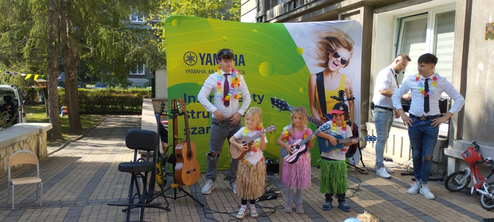 Nasze przedszkolaki bardzo żywo reagowały na to, co działo się na scenie. Muzycy wchodzili z publicznością w interakcje. Dali również chętnym dzieciom możliwość zagrania na instrumentach. ![]()