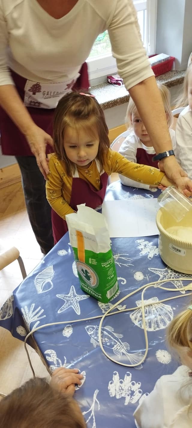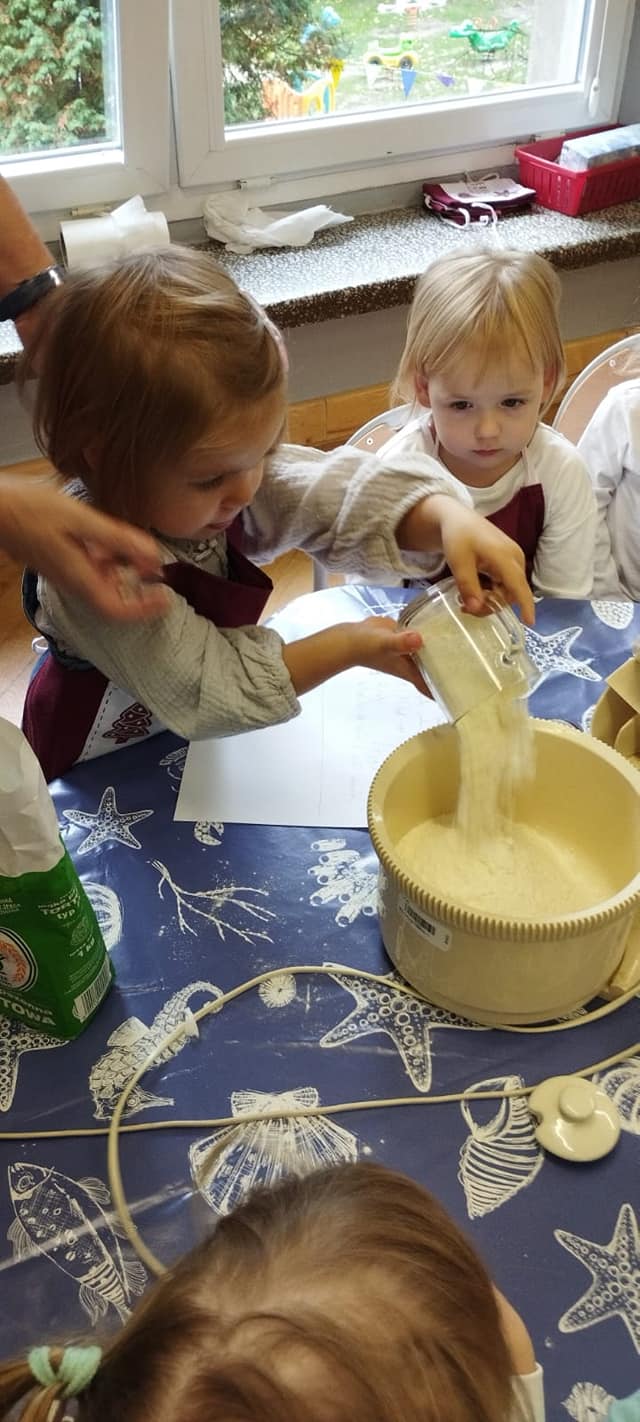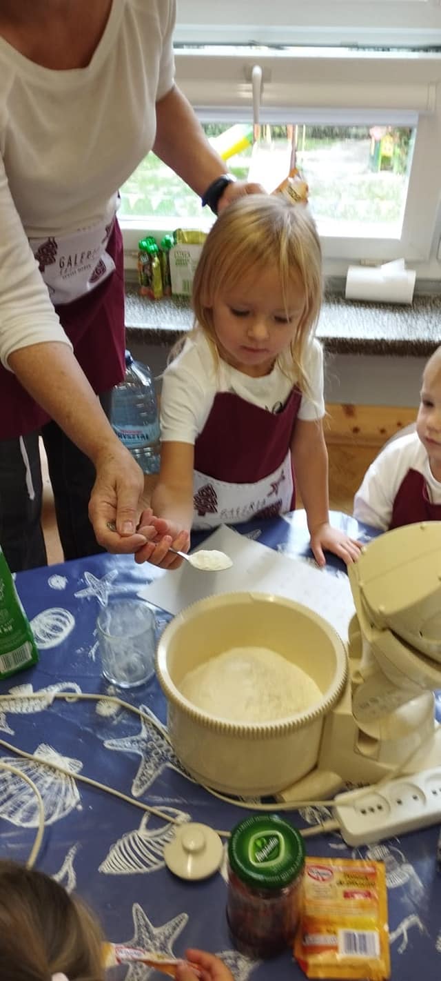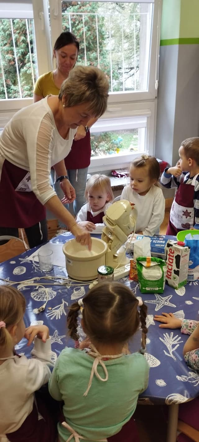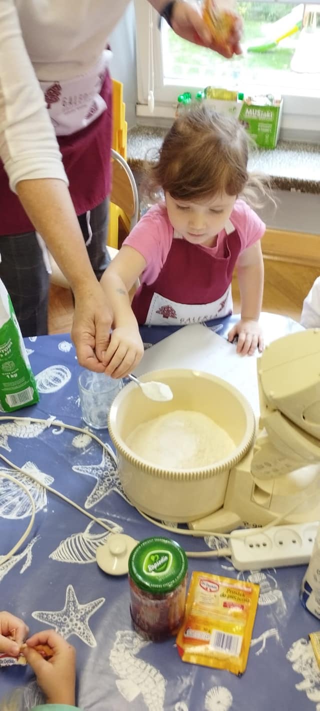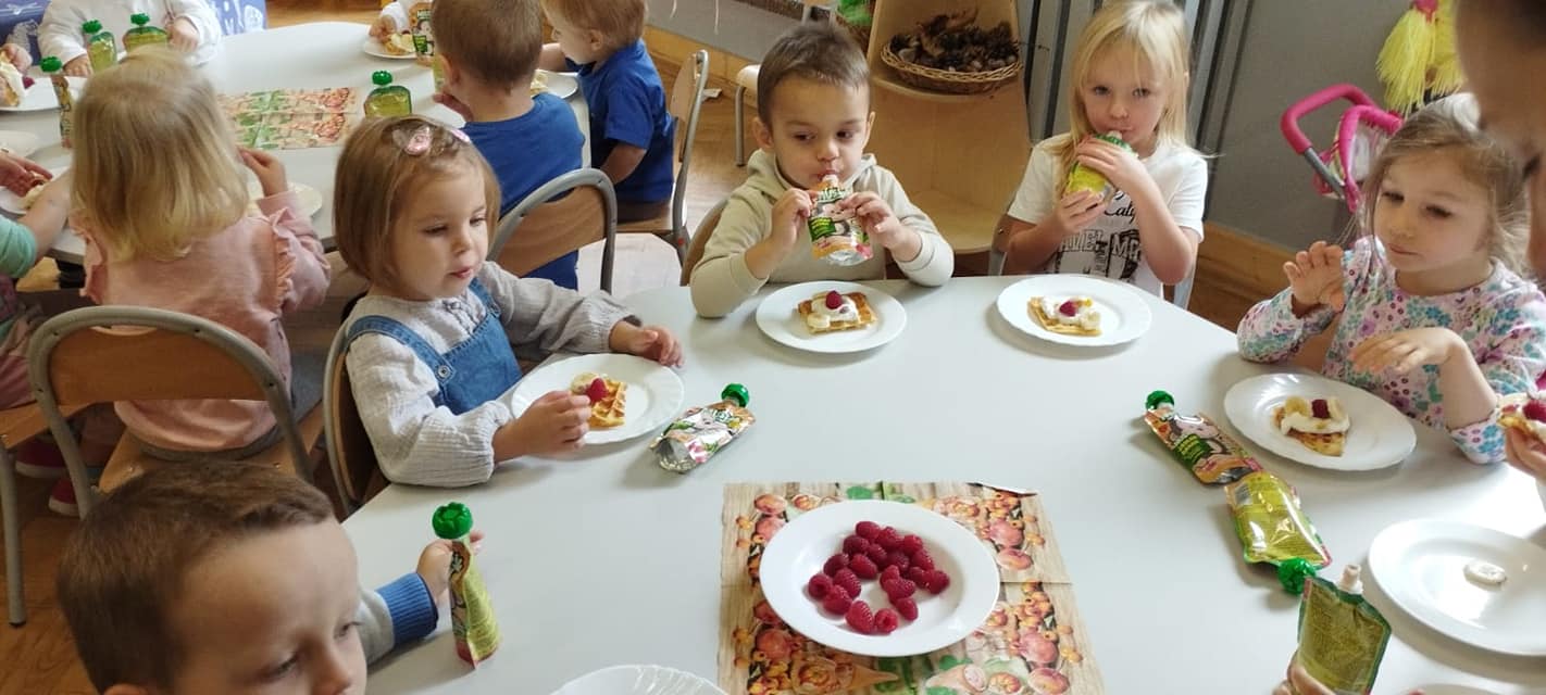 Podobnie jak „Dzień Chłopaka” we wrześniu świętowaliśmy w październiku „Dzień Dziewczynek”, a ponieważ jest ich w naszej grupie więcej niż chłopców to i obchody były huczniejsze. Dziewczynki jak to kobiety😄 wzięły się do roboty i po otrzymaniu prezentów zakasały rękawy🤣, założyły fartuszki i upiekły sobie gofry.🧇Nie sprawdziło się powiedzenie, że „gdzie kucharek sześć tam nie ma co jeść”.U nas było i bawiliśmy się cudownie.