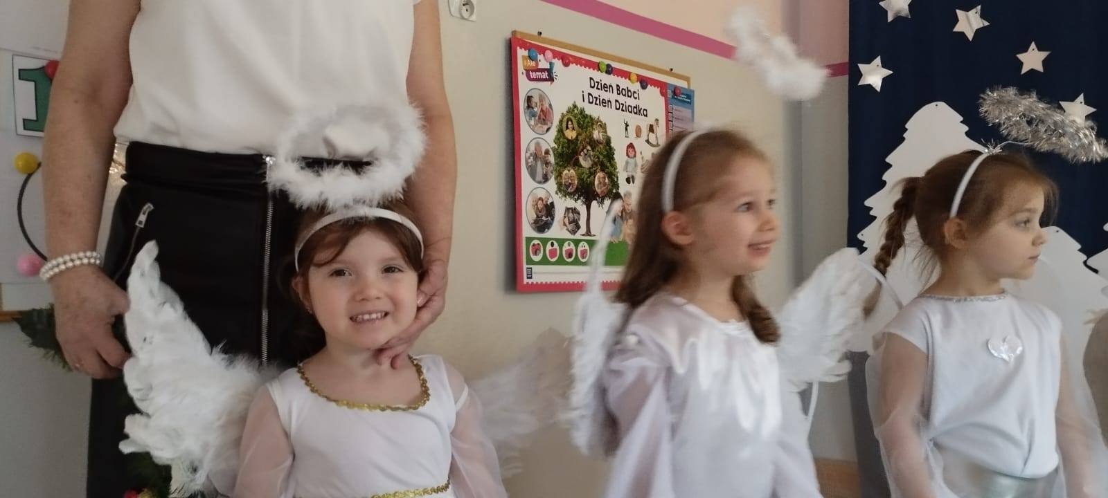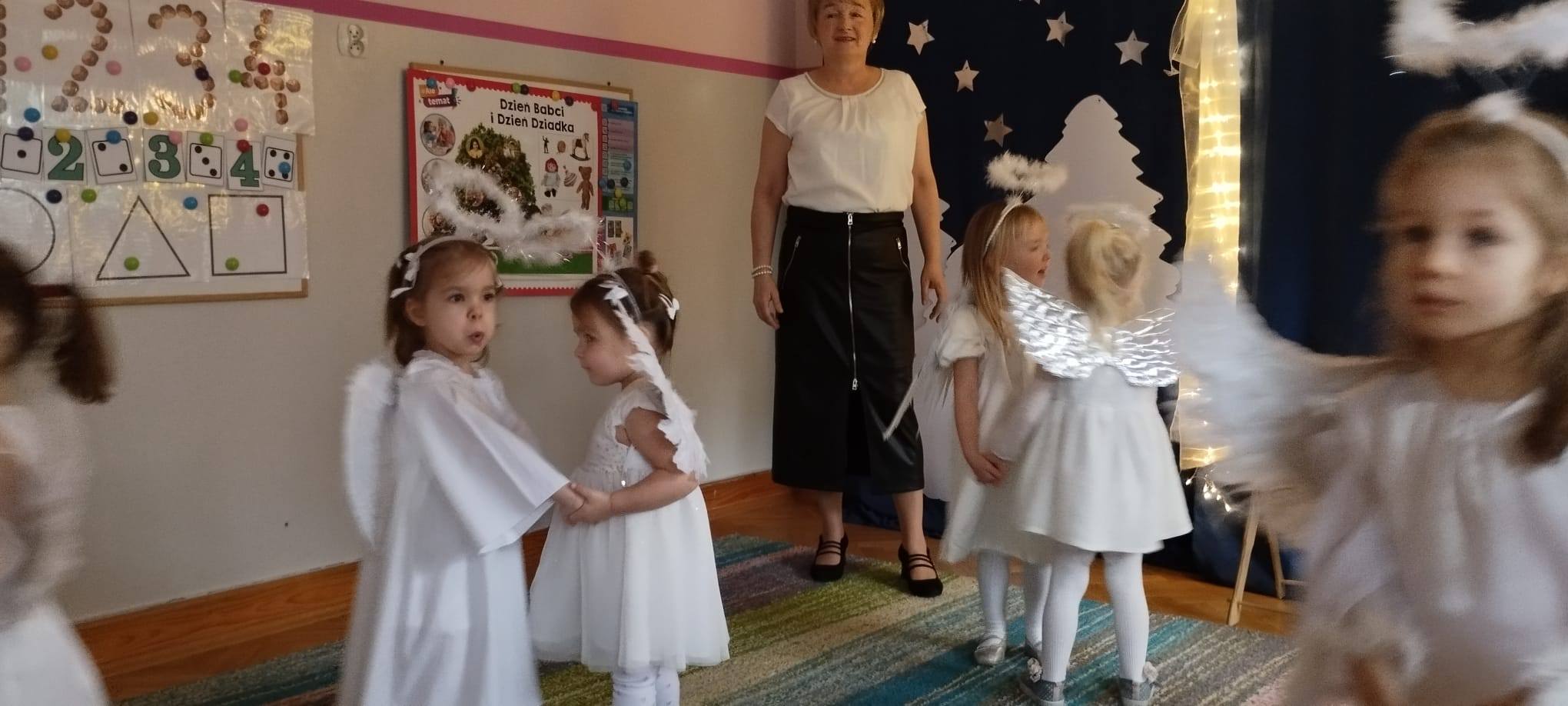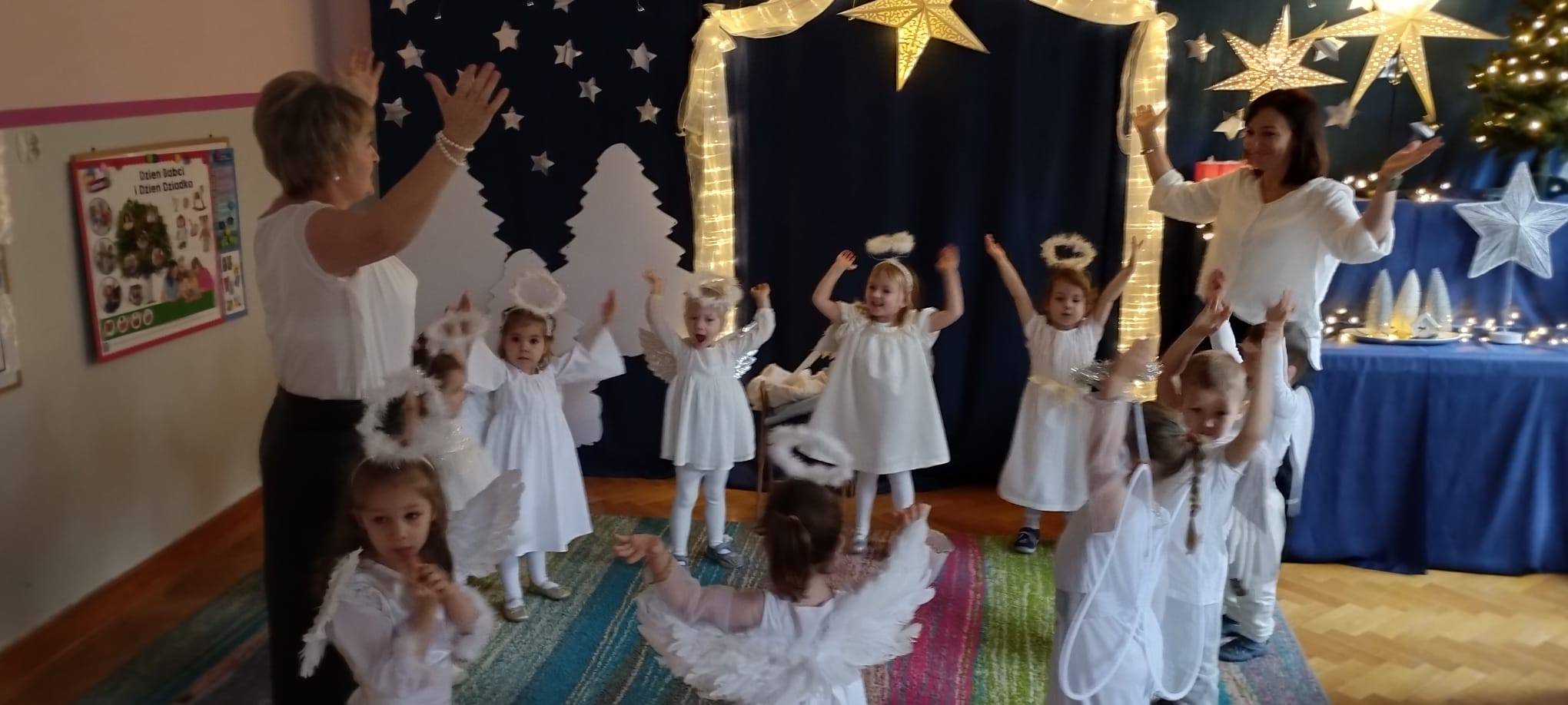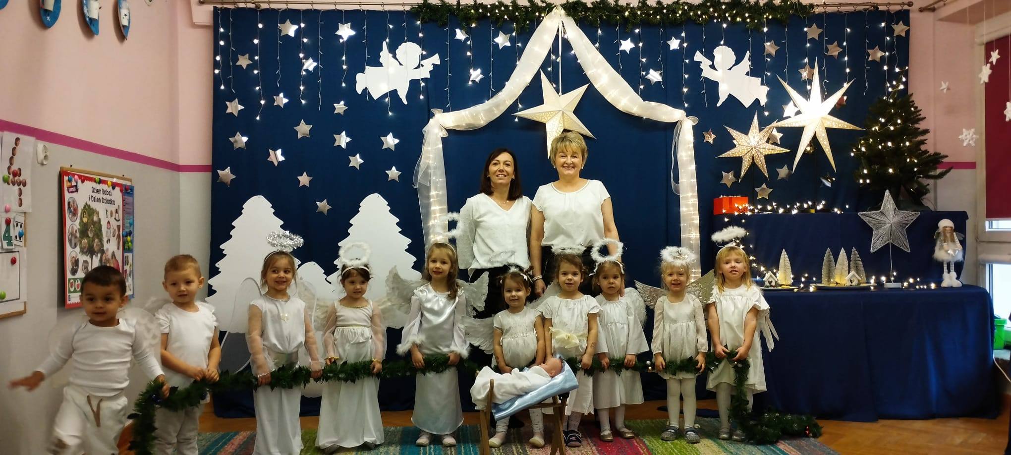 W tym dniu z nieba zleciały do nas piękne i niewinne aniołki, które opowiedziały historię Narodzenia Jezusa i wystąpiły dla ukochanych Babć i Dziadków oraz Rodziców i najbliższych.