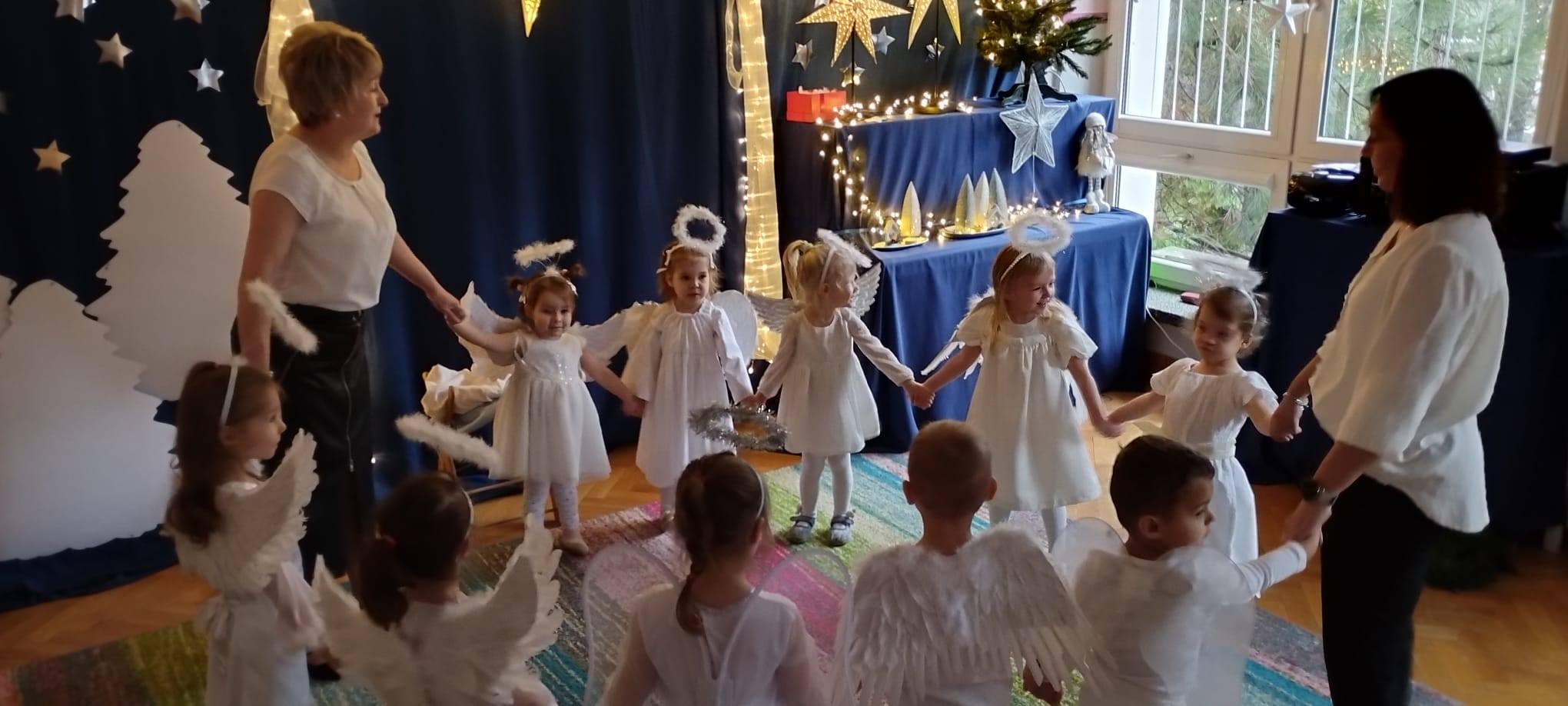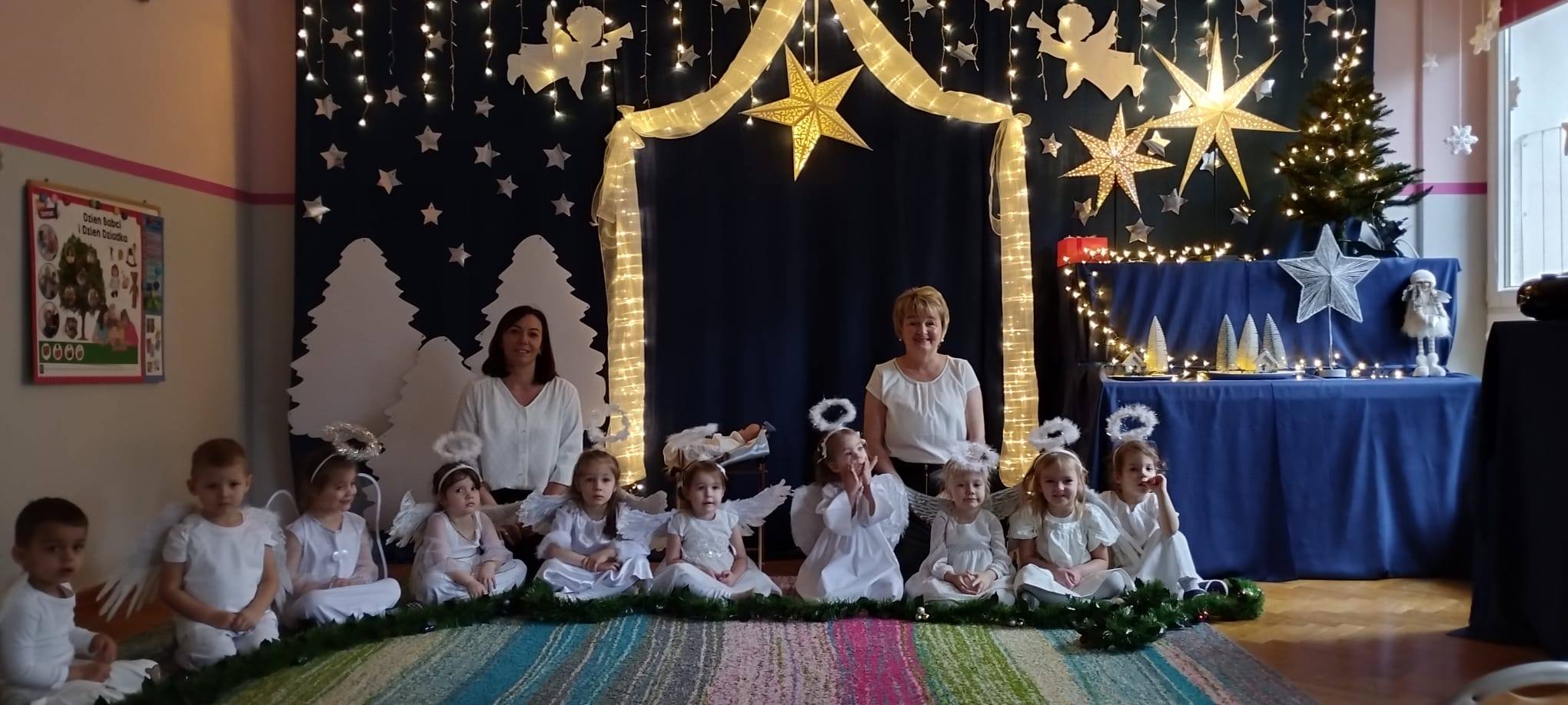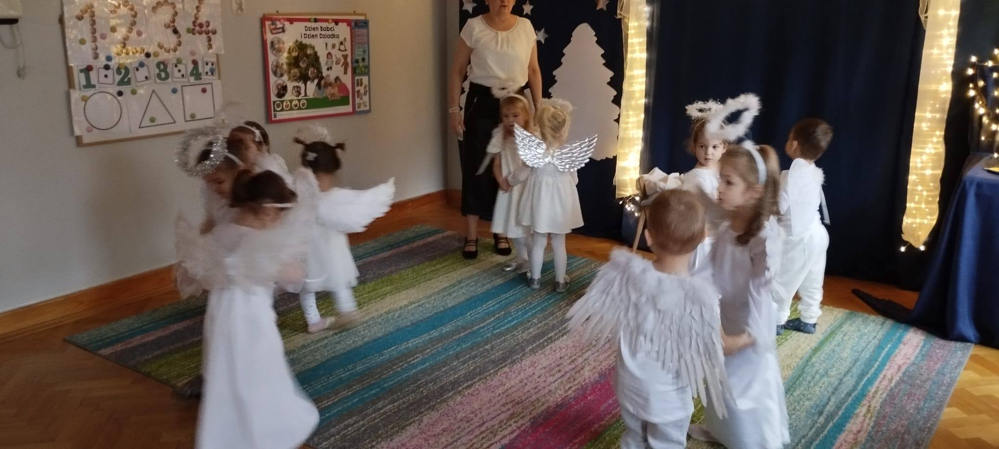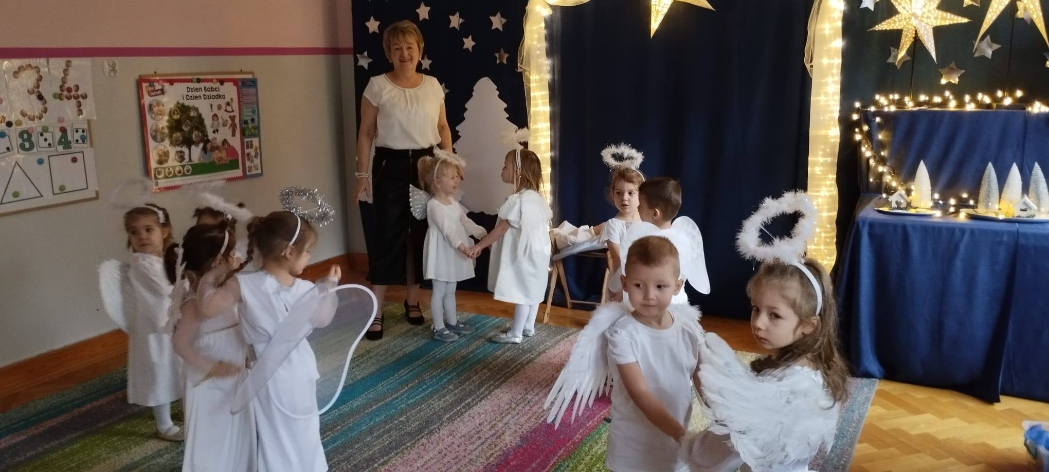 W tym dniu z nieba zleciały do nas piękne i niewinne aniołki, które opowiedziały historię Narodzenia Jezusa i wystąpiły dla ukochanych Babć i Dziadków oraz Rodziców i najbliższych.