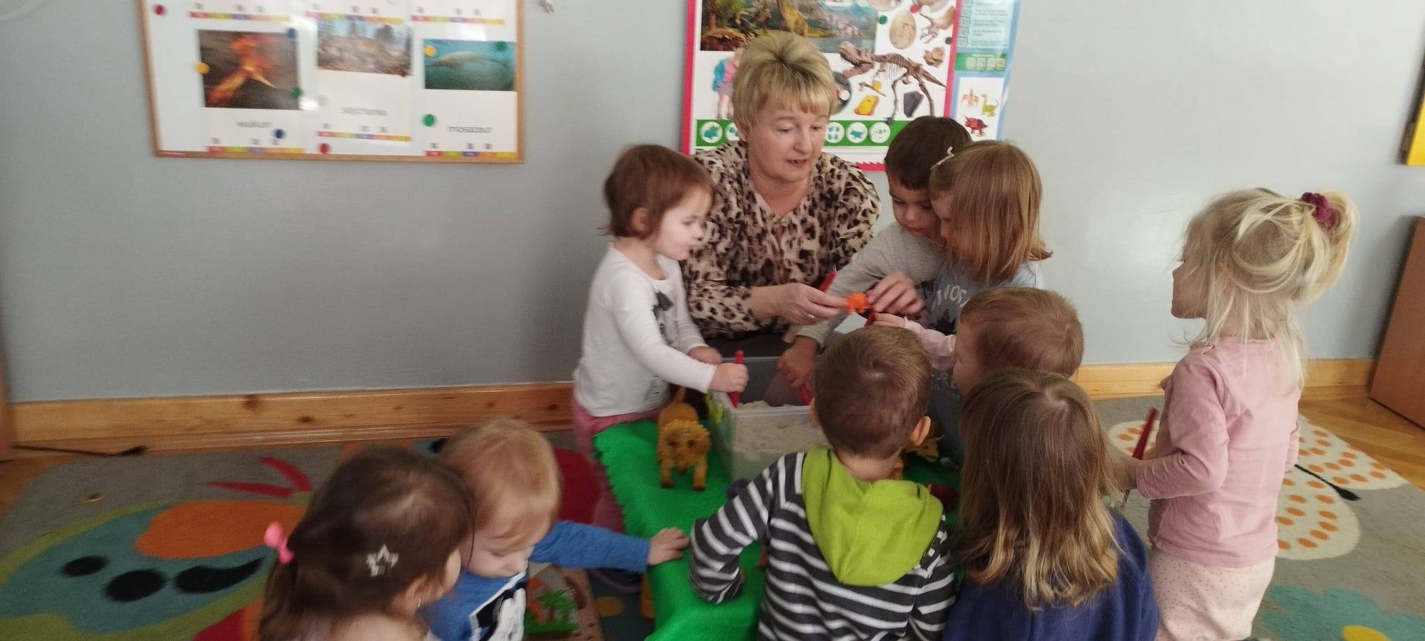 Motylki bawiły się także przy piosence „Poszukajmy dinozaura”, same zabawiły się w paleontologów i w piasku poszukiwały kości i szczątków dinozaurów i tu ,co najważniejsze”😄 osiągały sukcesy, bo jeżeli gdzieś można odnaleźć szczątki dinozaurów to na pewno w przedszkolu.😄
