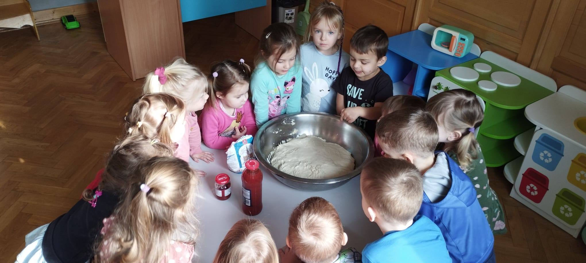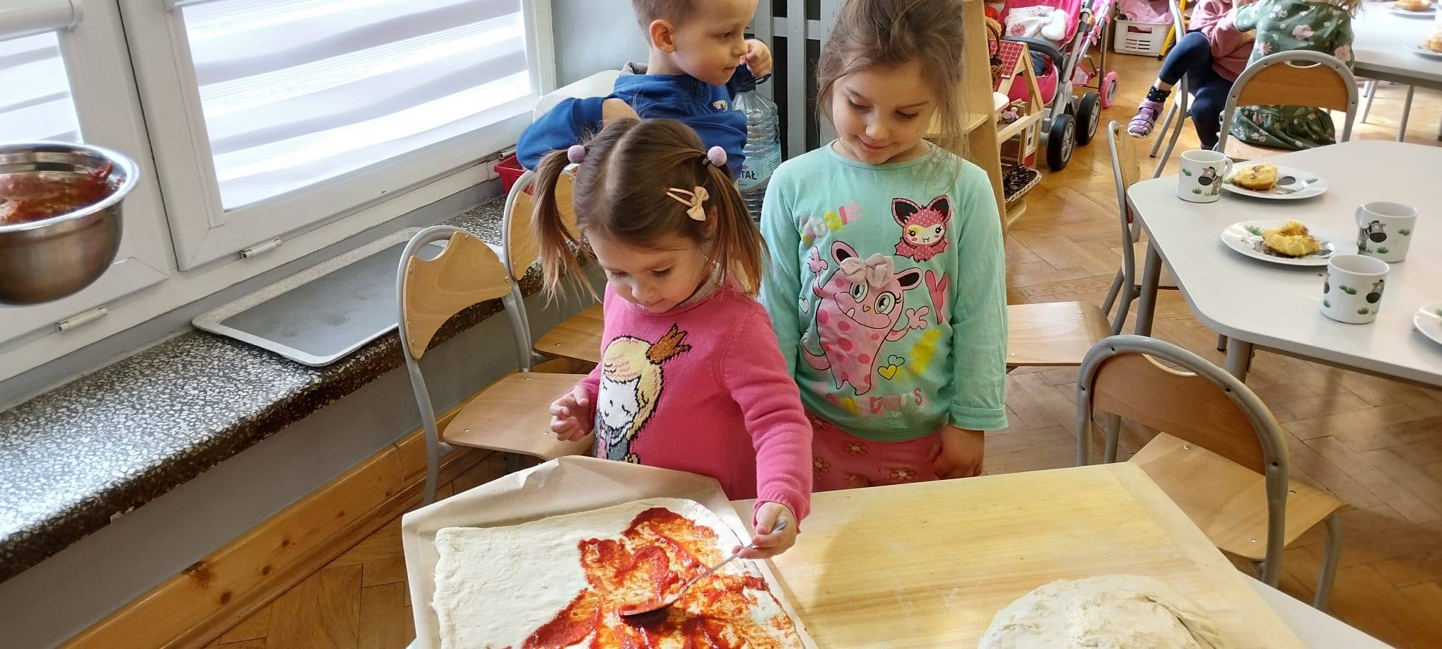 Motylki przygotowały pizze dla każdej z grup więc w tym dniu wszystkie dzieci w przedszkolu mogły zakosztować włoskich smaków w ramach włoskiego „La dolce vita”.