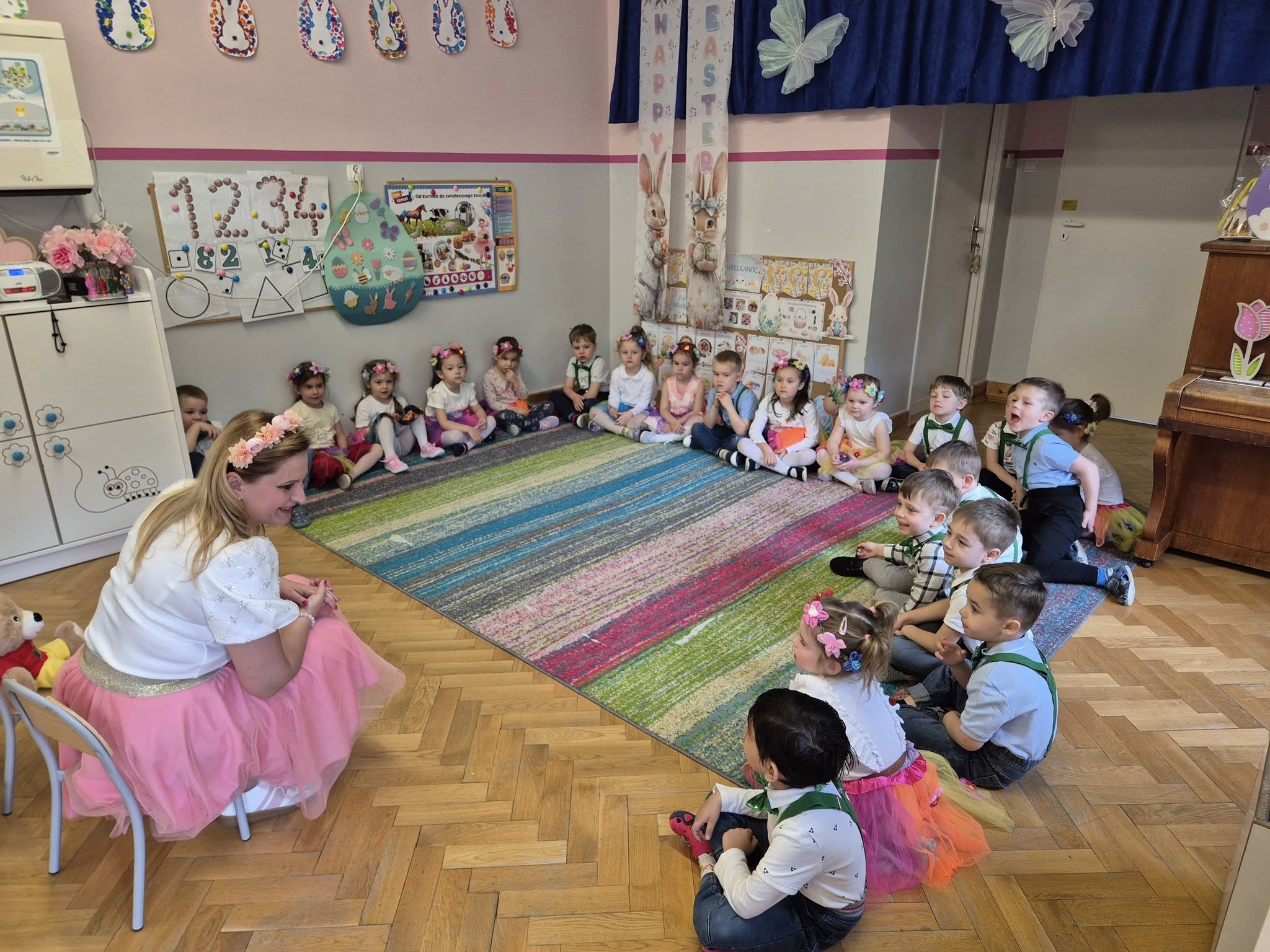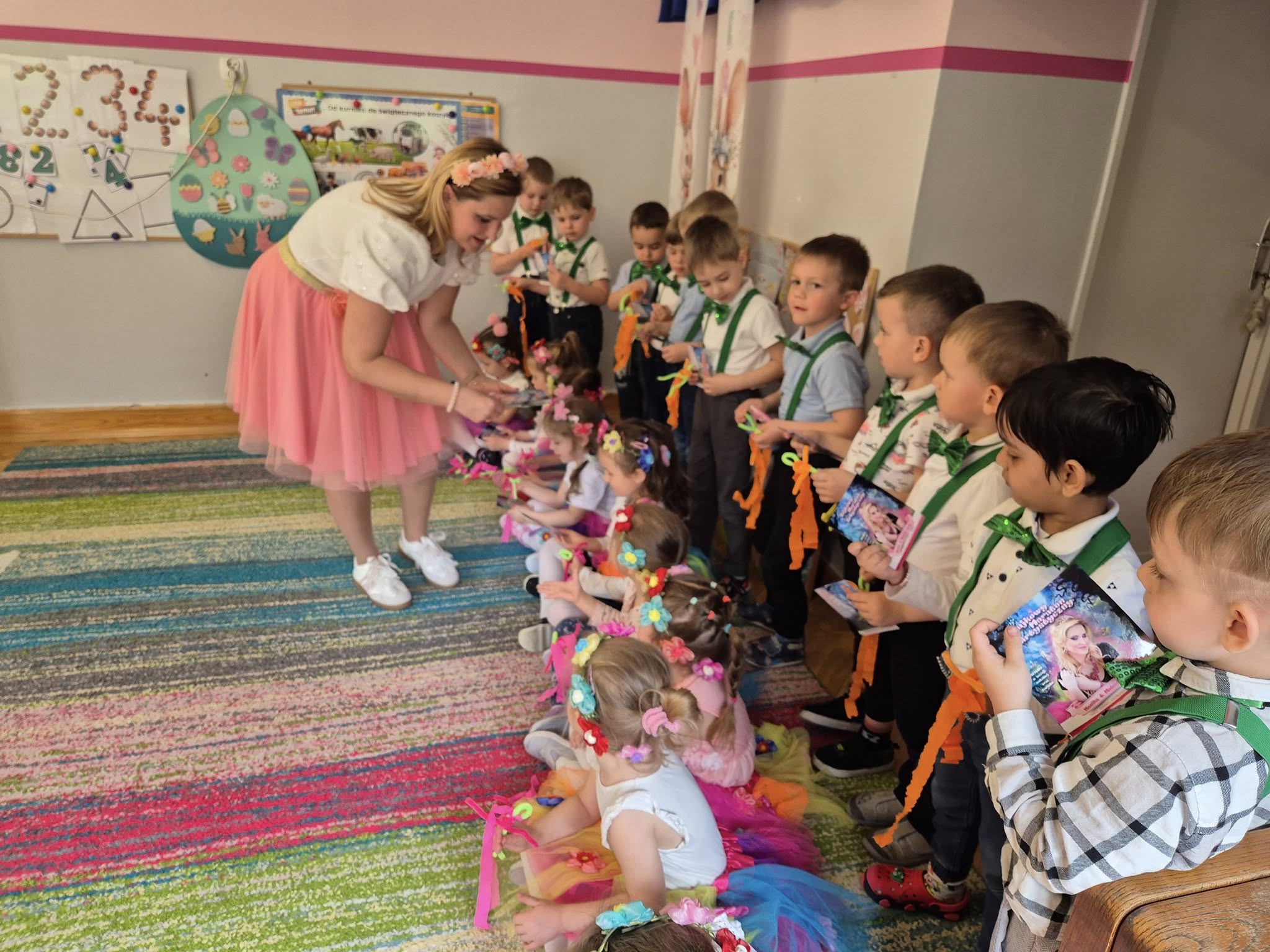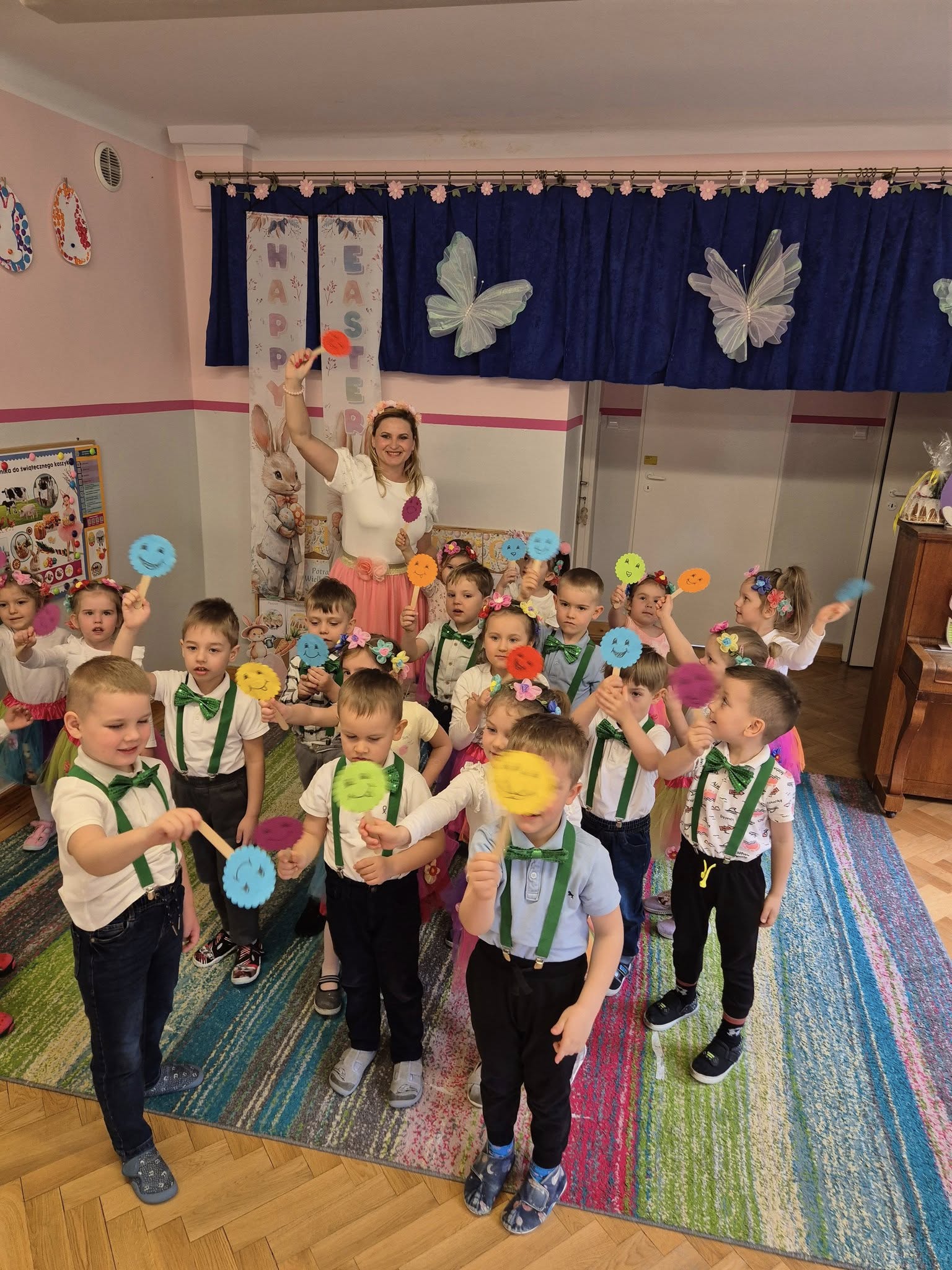 Dzieciaki zaśpiewały oraz zagrały na instrumentach piosenkę Święta Wielkanocne . Pani Monika zaczarowała Biedronki: nauczyliśmy się powitanki Hej witam Was chłopcy i dziewczynki oraz śpiewaliśmy i bawiliśmy się do piosenki Wiosenna pogoda Dziękujemy Pani Monice za wspaniałe prezenty.