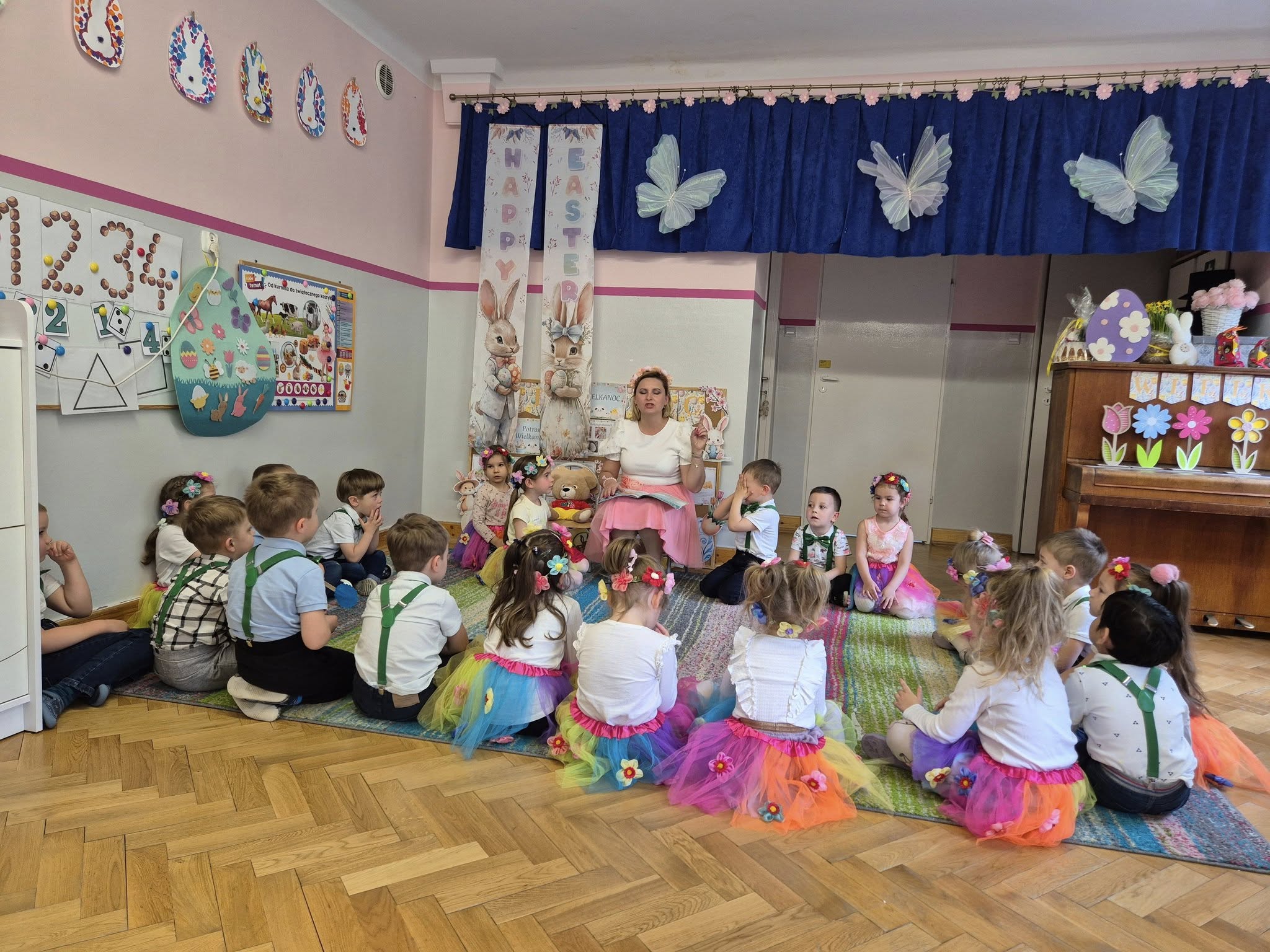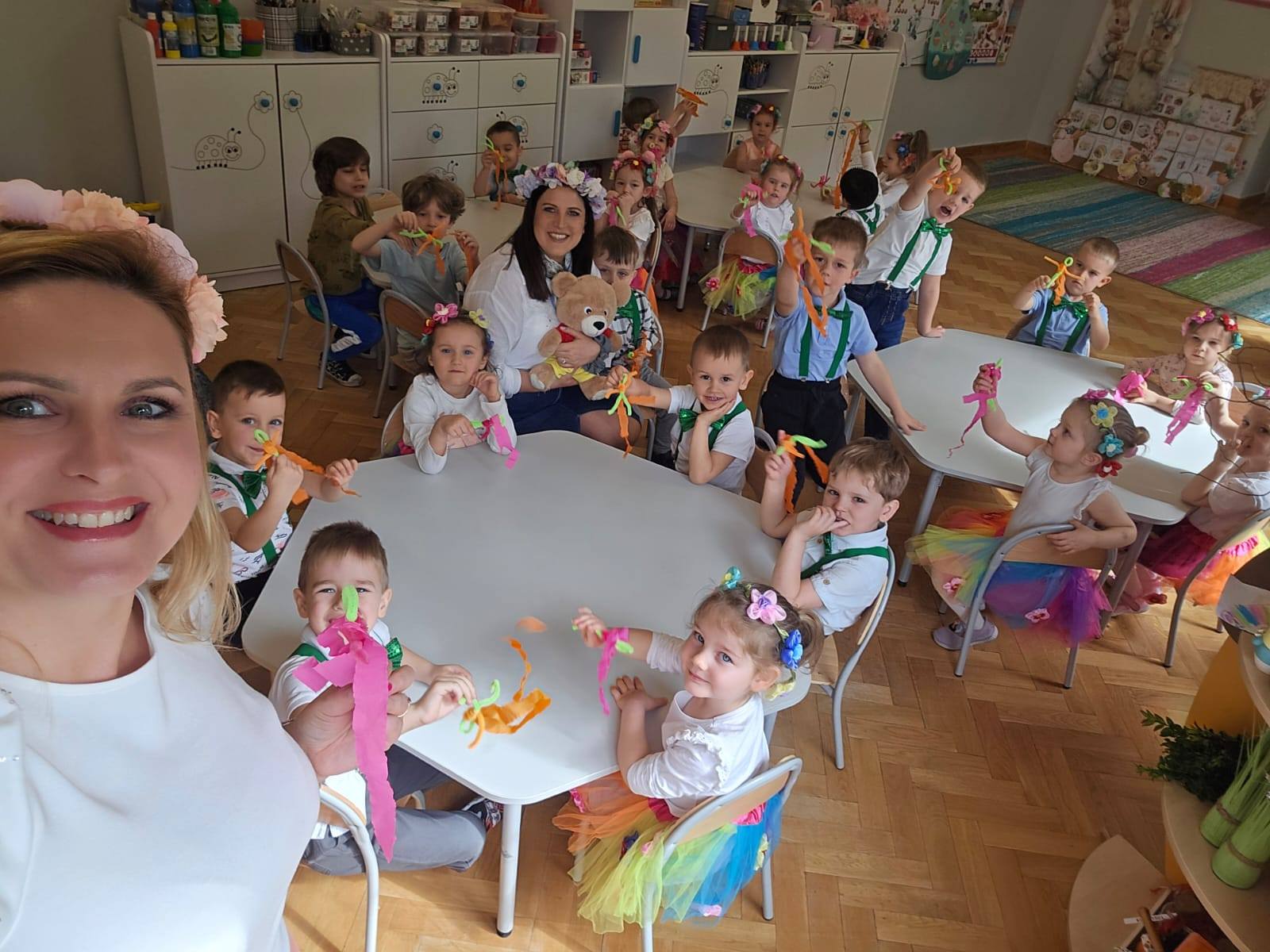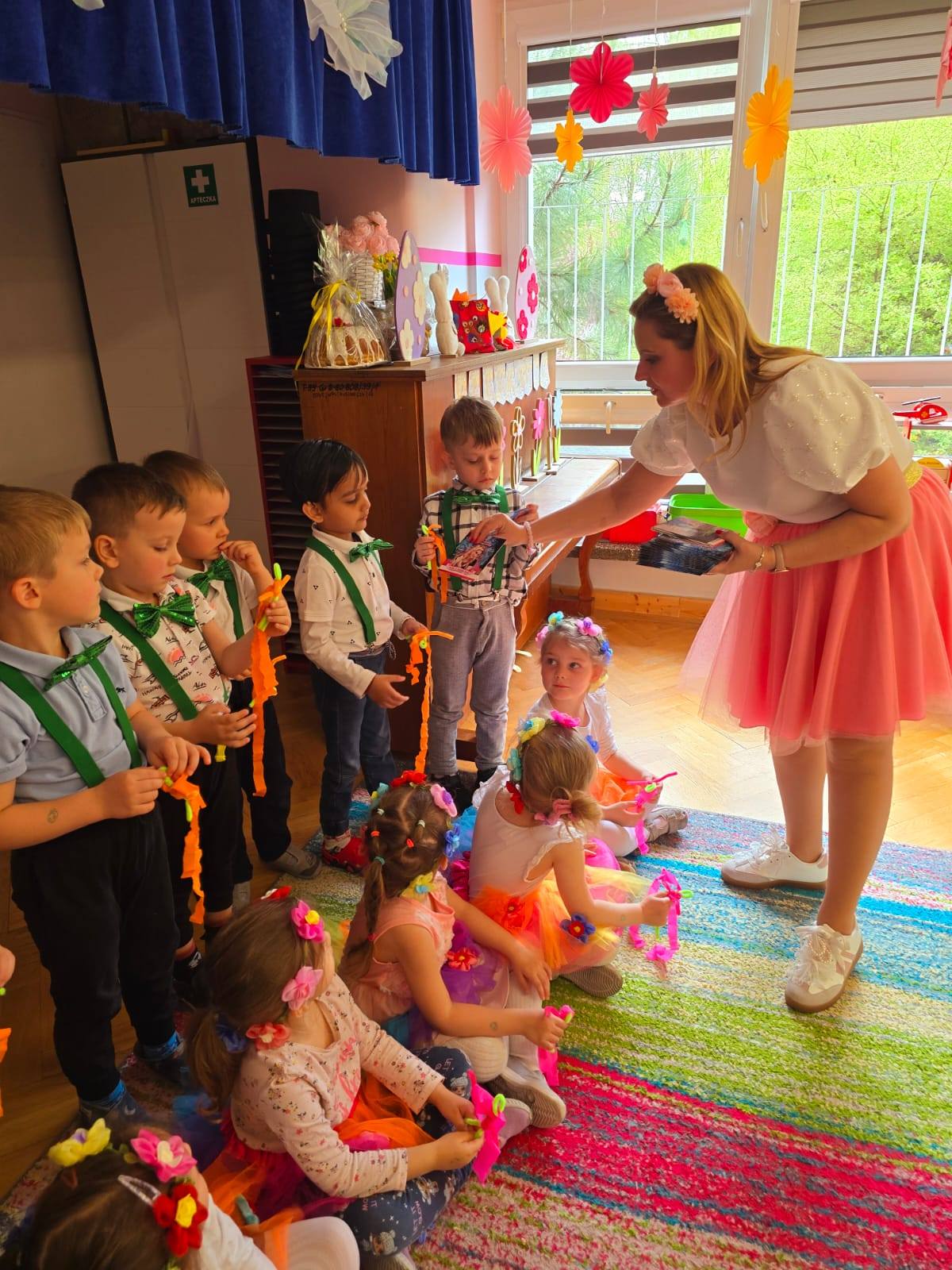 Dzieciaki zaśpiewały oraz zagrały na instrumentach piosenkę Święta Wielkanocne . Pani Monika zaczarowała Biedronki: nauczyliśmy się powitanki Hej witam Was chłopcy i dziewczynki oraz śpiewaliśmy i bawiliśmy się do piosenki Wiosenna pogoda Dziękujemy Pani Monice za wspaniałe prezenty.