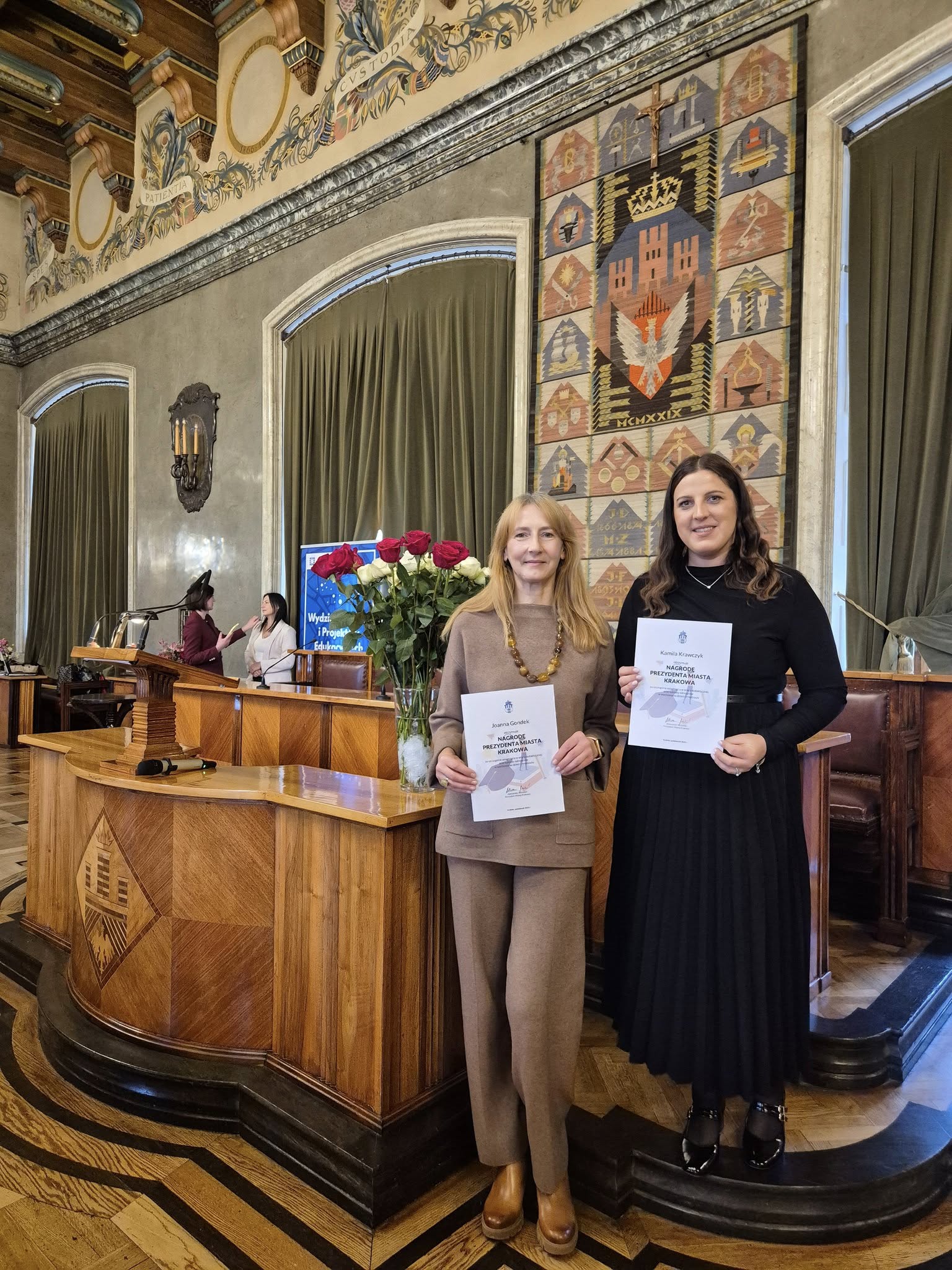 Z ogromną radością i dumą informujemy, że nasze wspaniałe nauczycielki – mgr Kamila Krawczyk oraz mgr Joanna Gondek – odebrały dziś Nagrody Prezydenta Miasta Krakowa za szczególne osiągnięcia w pracy dydaktyczno-wychowawczej.