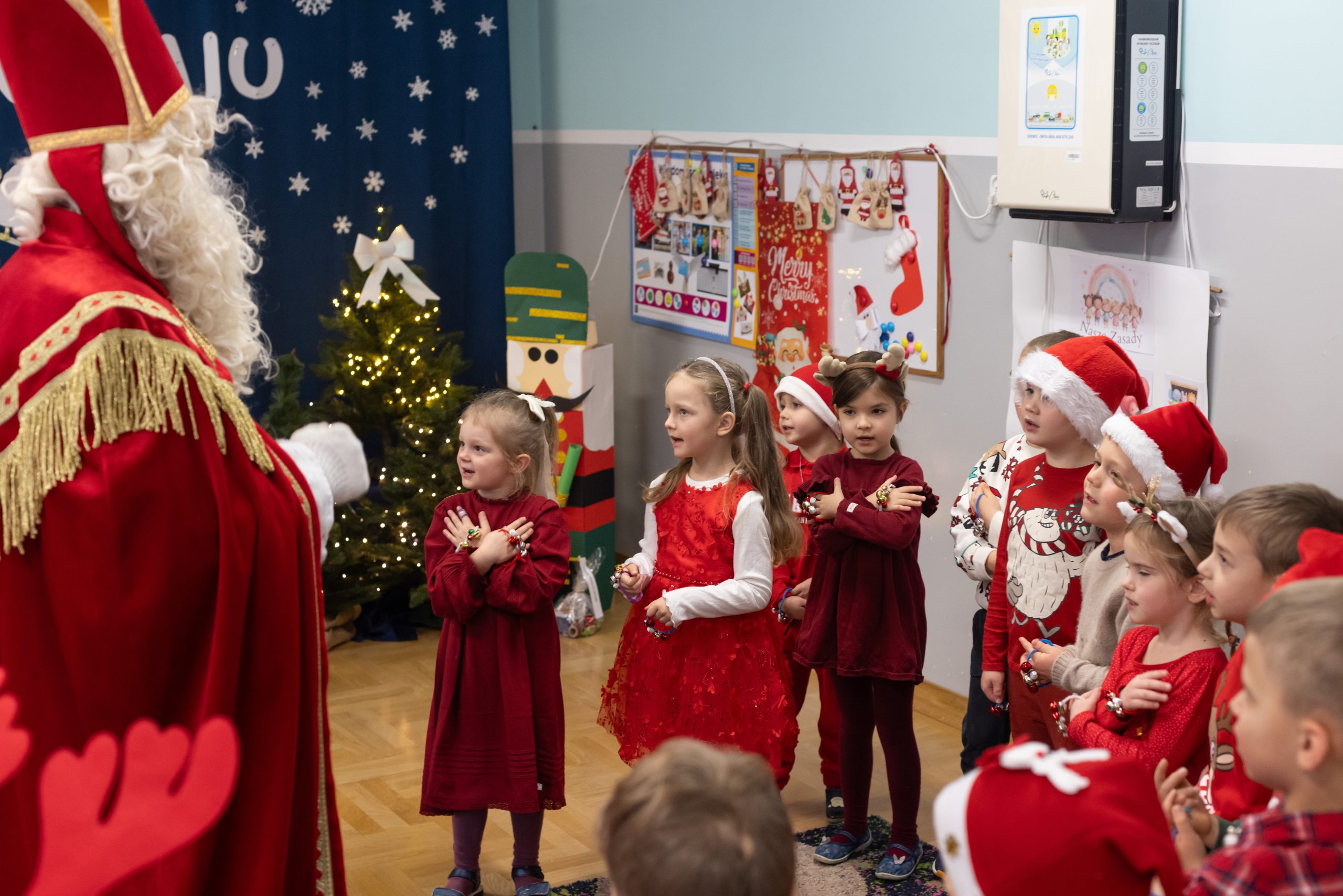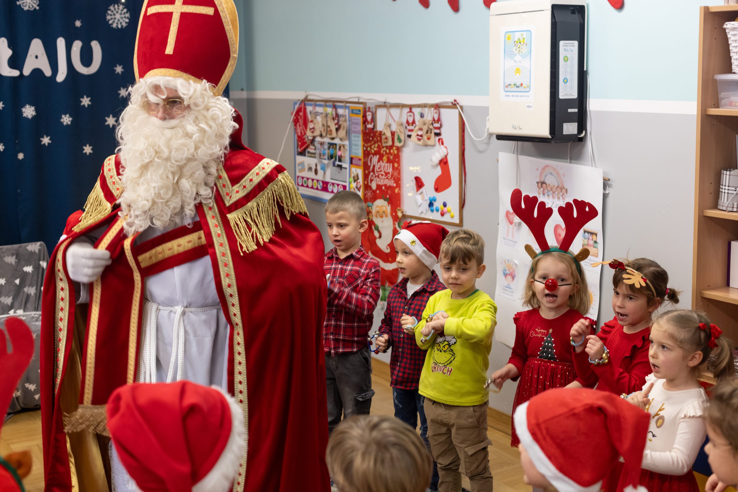 Pszczółki z radością i wielkim entuzjazmem zaśpiewały dla niego piosenkę, a Mikołaj chętnie porozmawiał z każdym dzieckiem.