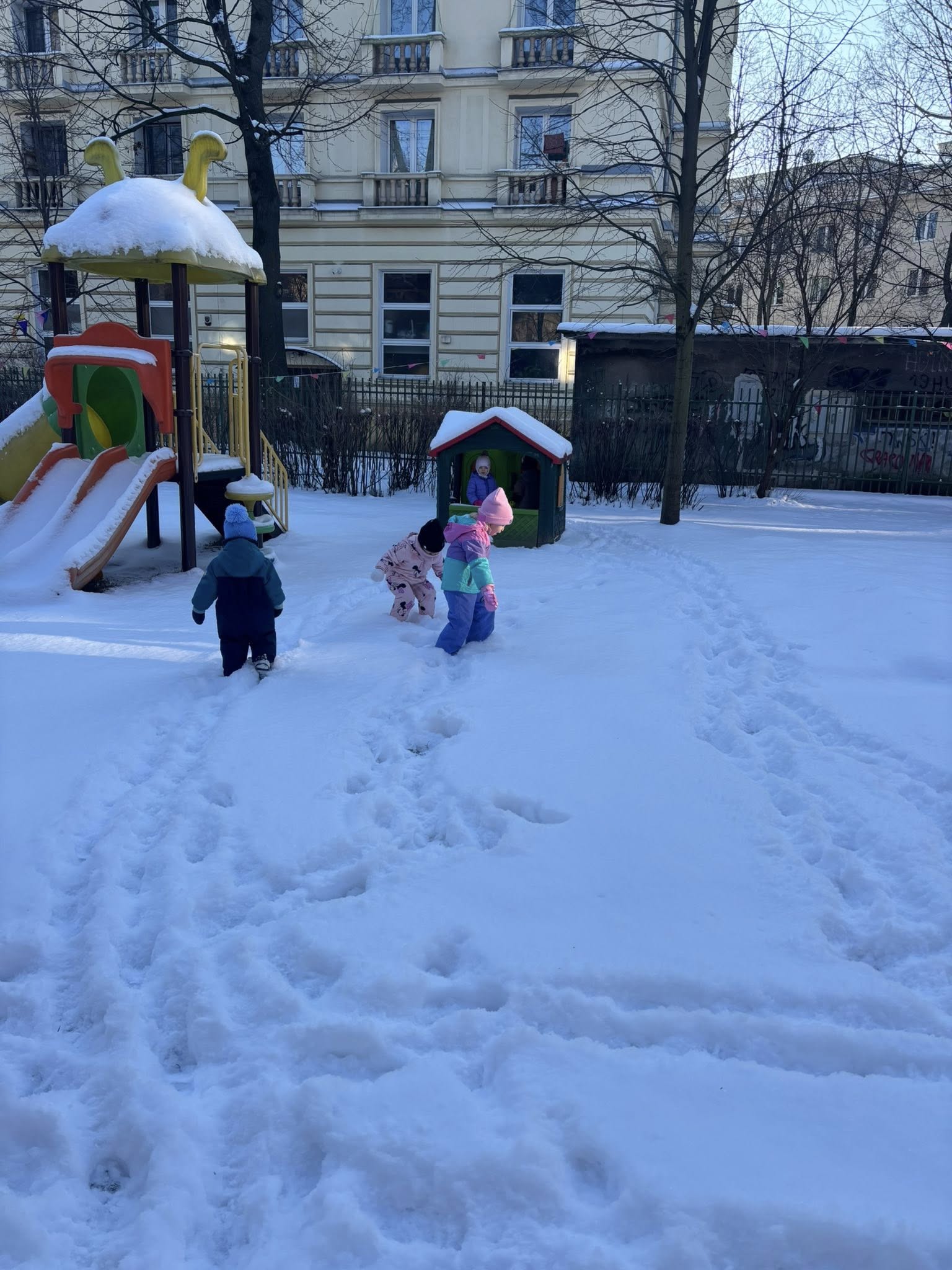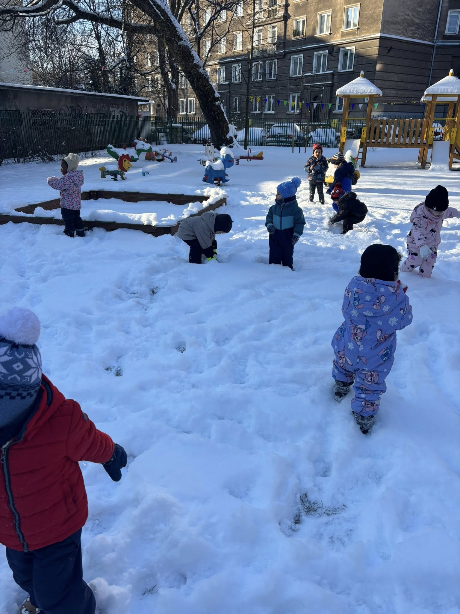 Dbamy, żeby nasze przedszkolaki codziennie mogły cieszyć się aktywnością na świeżym powietrzu – nawet w zimowe dni! ☃️💛