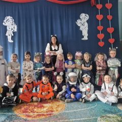 Kosmiczny bal Grupa Pszczółki wyruszyła w niezwykłą podróż w kosmos! Na naszym karnawałowym balu pojawili się kosmici i kosmitki, dzie...